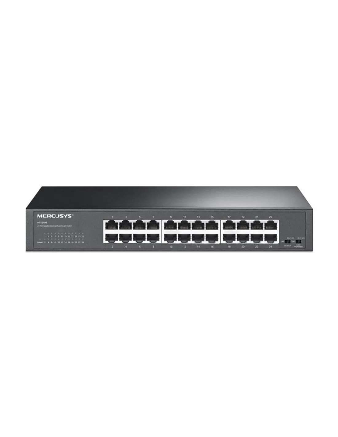 El **Mercusys MS124GS** es un switch no gestionable diseñado para entornos de red que requieren **alta velocidad, estabilidad y facilidad de uso**. Con sus **24 puertos Gigabit RJ45**, ofrece un rendimiento ideal para oficinas, pequeñas empresas y redes domésticas exigentes. Su diseño metálico y enrackable, junto con funciones avanzadas como **aislamiento de puertos** y **prevención de bucles**, lo convierten en una solución eficiente y duradera para distribuir el tráfico de red sin complicaciones.