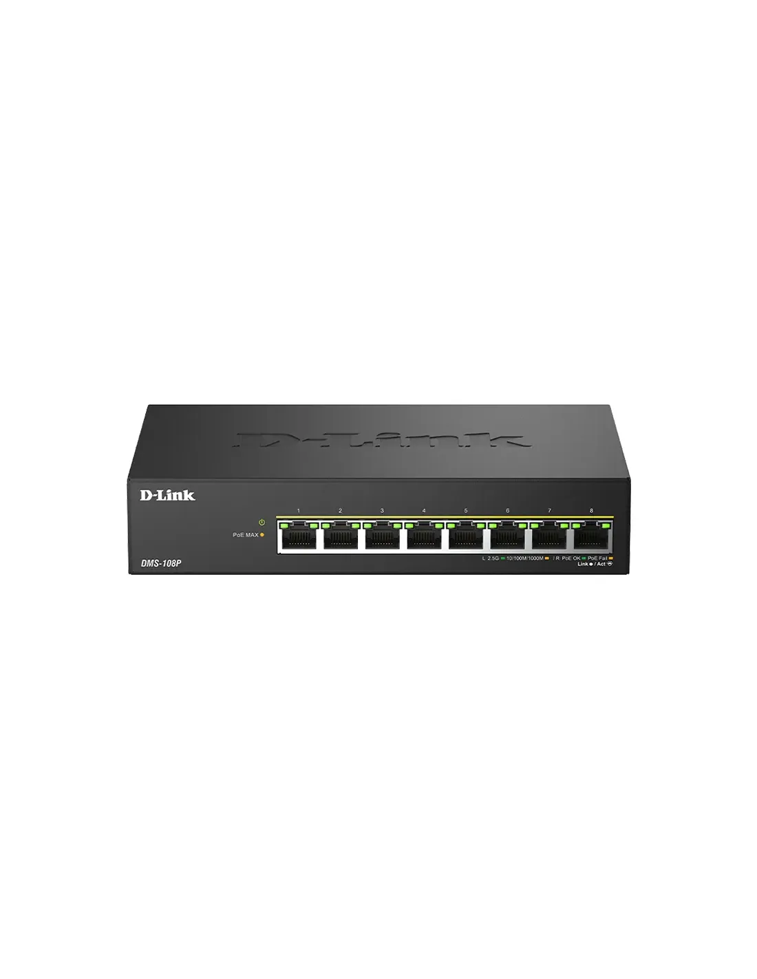 D-Link DMS-108P/E, No administrado, 2.5G Ethernet (100/1000/2500), Energía sobre Ethernet (PoE)