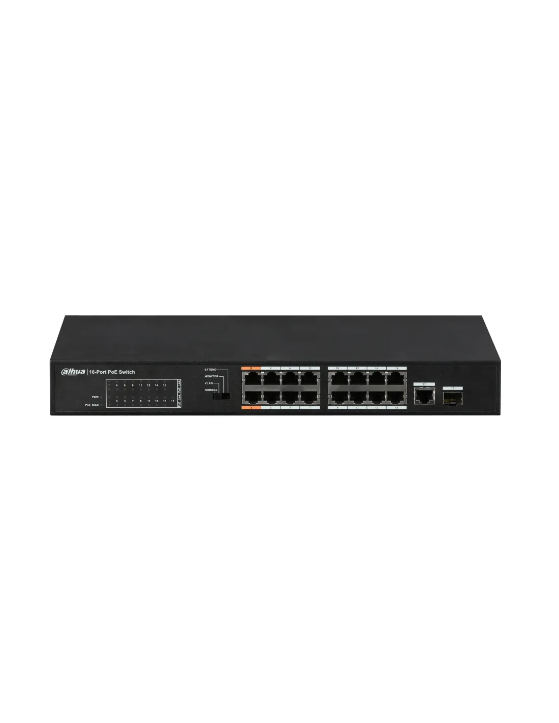 (DH-PFS3117-16ET-135) DAHUA SWITCH POE 16 PUERTOS + 1 PUERTO GIGABIT