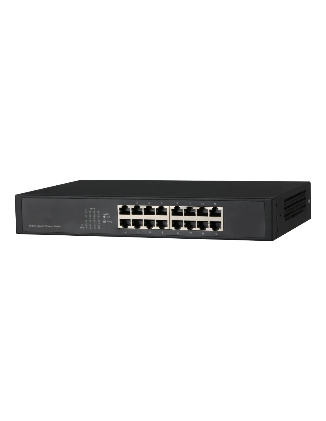 Dahua Technology PFS3016-16GT. Tipo de interruptor: No administrado, Capa del interruptor: L2. Puertos tipo básico de conmutación RJ-45 Ethernet: Gigabit Ethernet (10/100/1000), Cantidad de puertos básicos de conmutación RJ-45 Ethernet: 16. Tabla de direcciones MAC: 8000 entradas, Capacidad de conmutación: 32 Gbit/s. Estándares de red: IEEE 802.3, IEEE 802.3ab, IEEE 802.3u