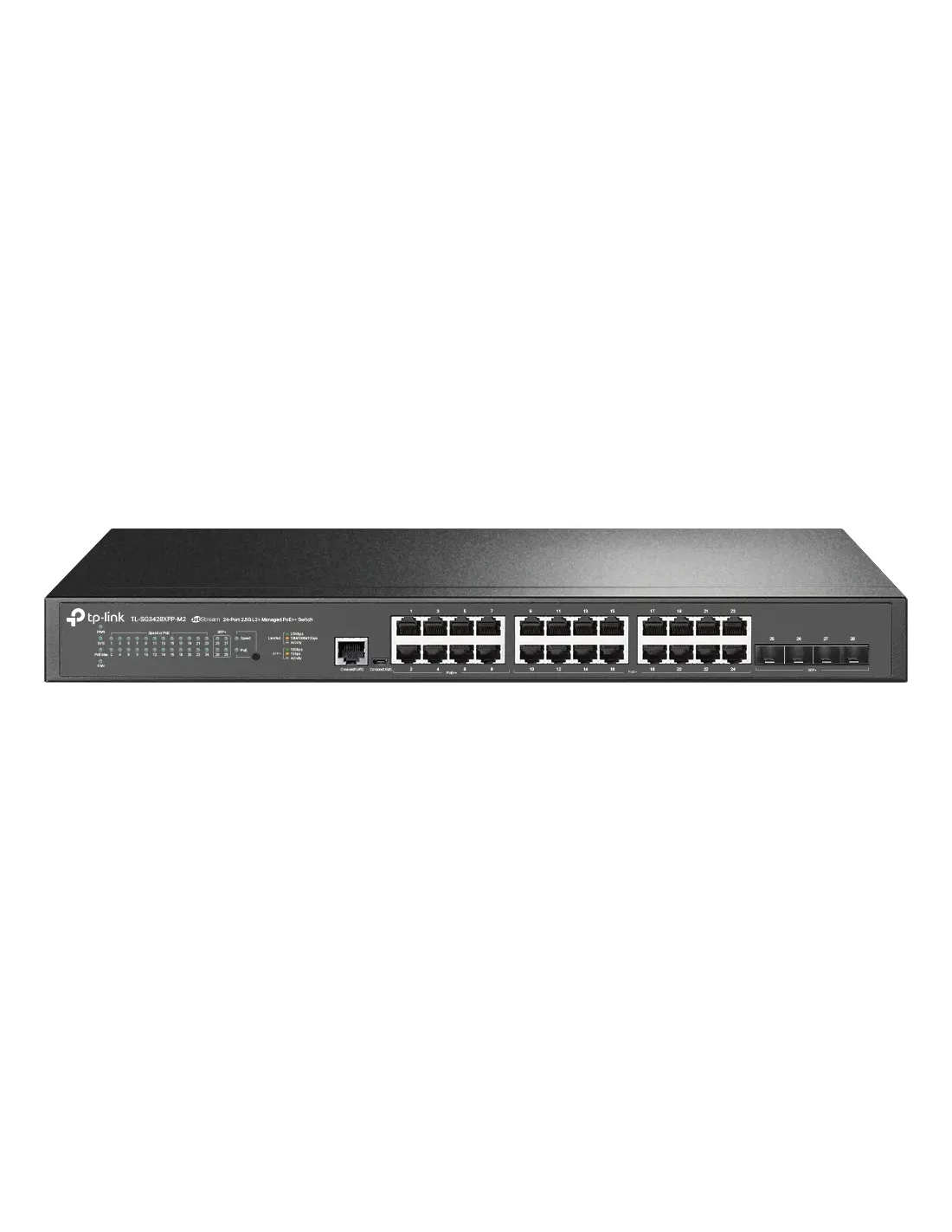 TP-LINK JETSTREAM 24-PORT 2.5GBASE-T AND 4-PORT 10GE SFP+ L2+ MANAGED SWITCH WITH 16-PORT POE+ & 8-PORT POE++. TL-SG3428XPP-M2