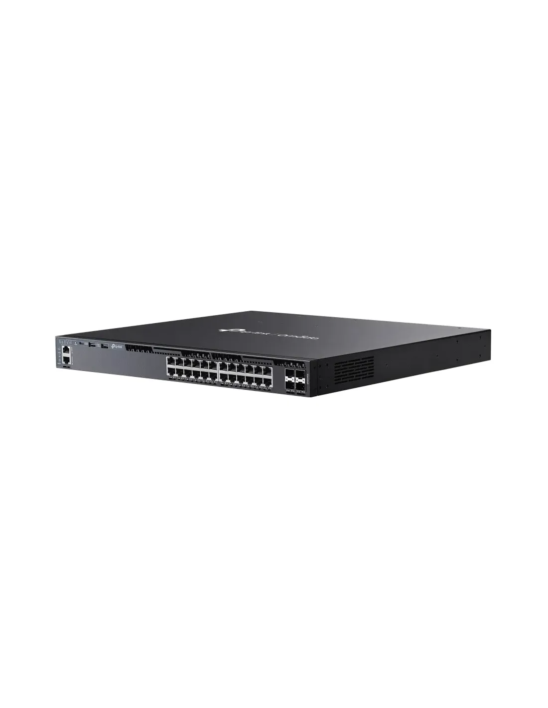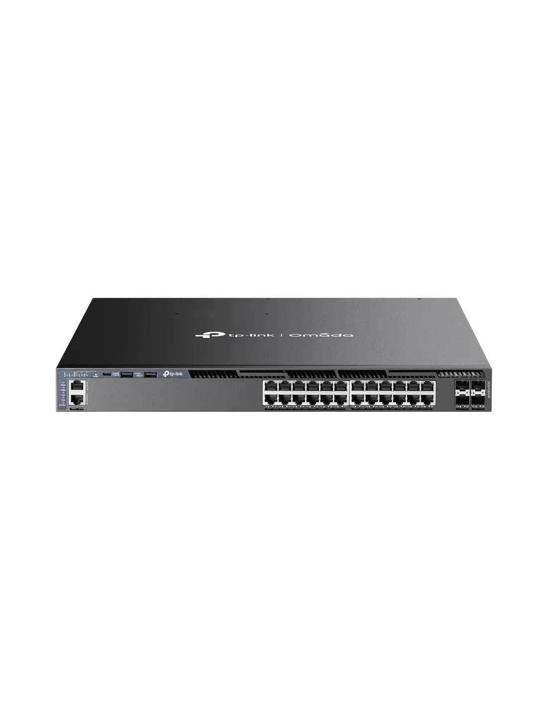TP-LINK OMADA 24-PORTGIGABIT STACKABLE L3 MANAGED POE+ SWITCH WITH 4 10GE SFP+ SLOTS PORT: 24× GIGABIT POE+ RJ45 PORTS, 4× 10G SFP+ SLOTS, RJ45/TYPE C USB CONSOLE PORT, MANAGEMENT PORT, 2× USB2.0 PORTS SPEC: 802.3AT/AF, MAX 720 W POE POWER (DEPEND ON POW