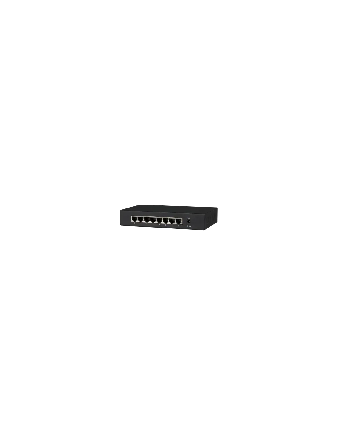 Dahua Technology PFS3008-8GT. Tipo de interruptor: No administrado, Capa del interruptor: L2. Puertos tipo básico de conmutación RJ-45 Ethernet: Gigabit Ethernet (10/100/1000), Cantidad de puertos básicos de conmutación RJ-45 Ethernet: 8. Tabla de direcciones MAC: 4000 entradas, Capacidad de conmutación: 16 Gbit/s. Estándares de red: IEEE 802.3, IEEE 802.3ab, IEEE 802.3u. Voltaje de entrada DC: 9 V