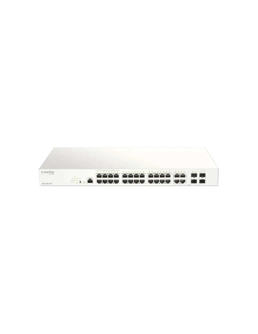 D-Link DBS-2000-28P/E. Tipo de interruptor: Gestionado, Capa del interruptor: L2. Puertos tipo básico de conmutación RJ-45 Ethernet: Gigabit Ethernet (10/100/1000), Cantidad de puertos básicos de conmutación RJ-45 Ethernet: 24. Tabla de direcciones MAC: 8000 entradas, Capacidad de conmutación: 56 Gbit/s. Estándares de red: IEEE 802.3ad, IEEE 802.3at. Energía sobre Ethernet (PoE). Montaje en rack