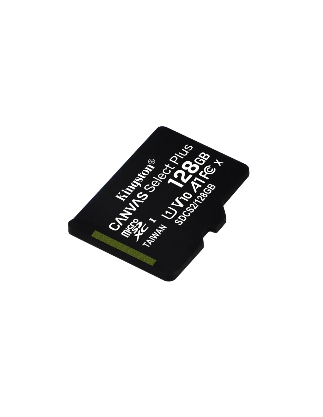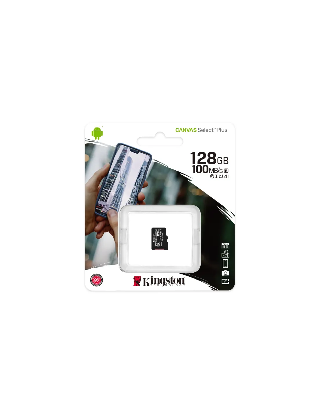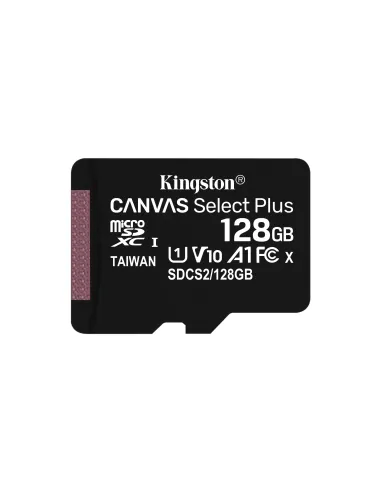 Kingston Technology Paquete de una tarjeta micSDXC Canvas Select Plus 100R A1 C10 de 128 GB sin ADP, 128 GB, MicroSDXC, Clase 10, UHS-I, 100 MB/s, Class 1 (U1)