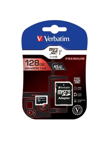 Verbatim Premium, 128 GB, MicroSDXC, Clase 10, UHS-I, 45 MB/s, 10 MB/s