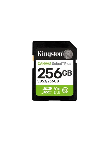 Kingston Technology 256 GB SDXC Canvas Select Plus Gen3 150 MB/s C10 UHS-I U1 V10, 256 GB, SD, Clase 10, UHS-I, 150 MB/s, Class 1 (U1)