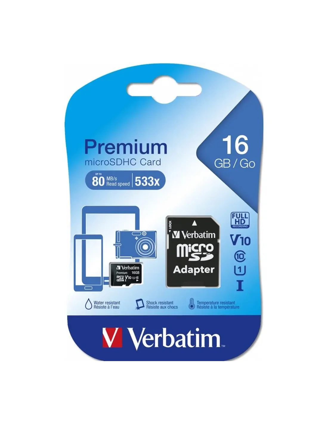 Tarjeta memoria micro sd verbatim 16gb c10 u1 + adaptador
