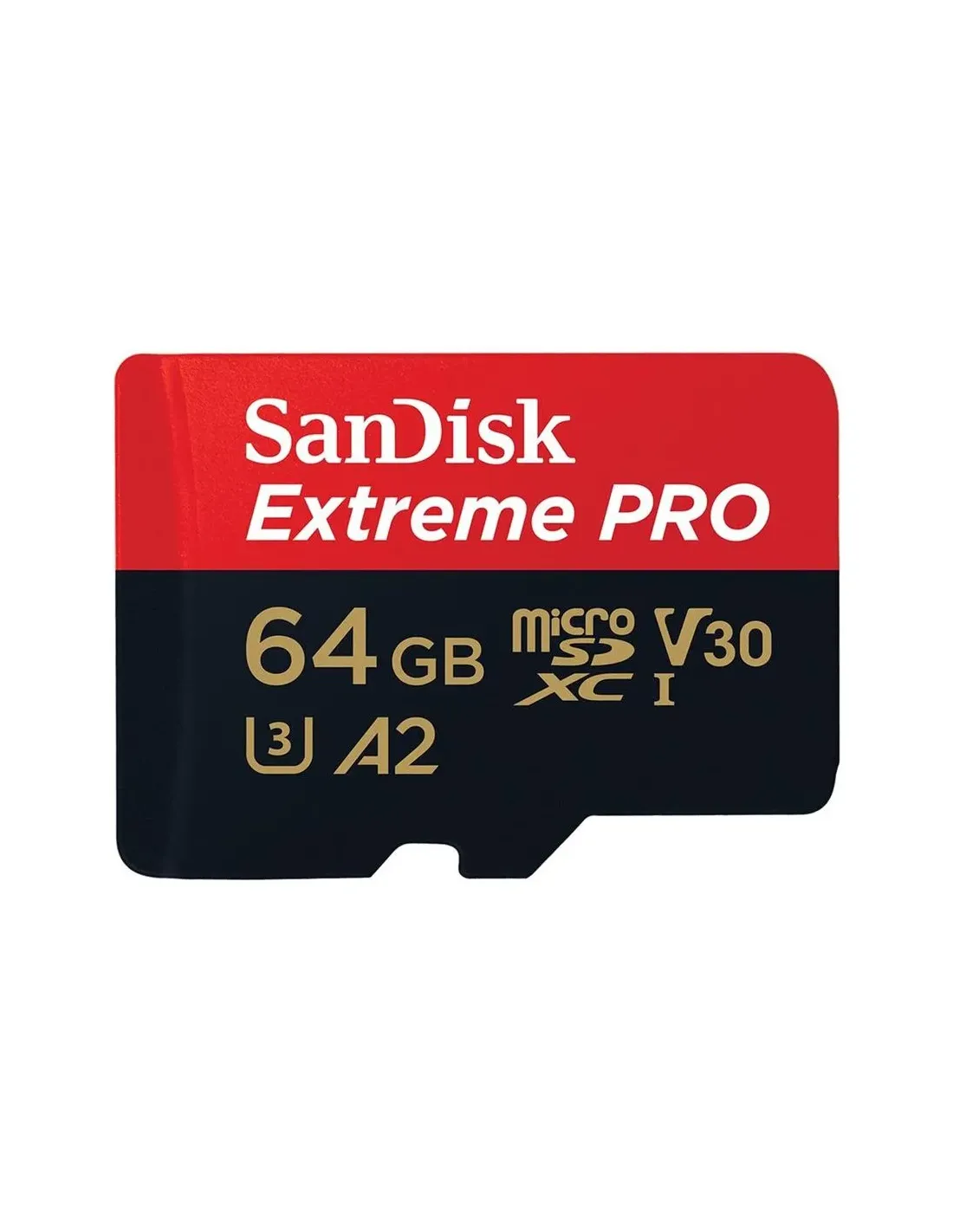 SanDisk Extreme PRO. Capacidad: 64 GB, Tipo de tarjeta flash: MicroSDXC, Clase de memoria flash: Clase 10, Tipo de memoria interna: UHS-I, Velocidad de lectura: 200 MB/s, Velocidad de escritura: 140 MB/s, Clase de velocidad UHS: Class 3 (U3), Clase de velocidad de vídeo: V30. Funciones de protección: Resistente a golpes, Resistente a la temperatura, Resistente al agua, A prueba de rayos X, Color del producto: Negro, Rojo