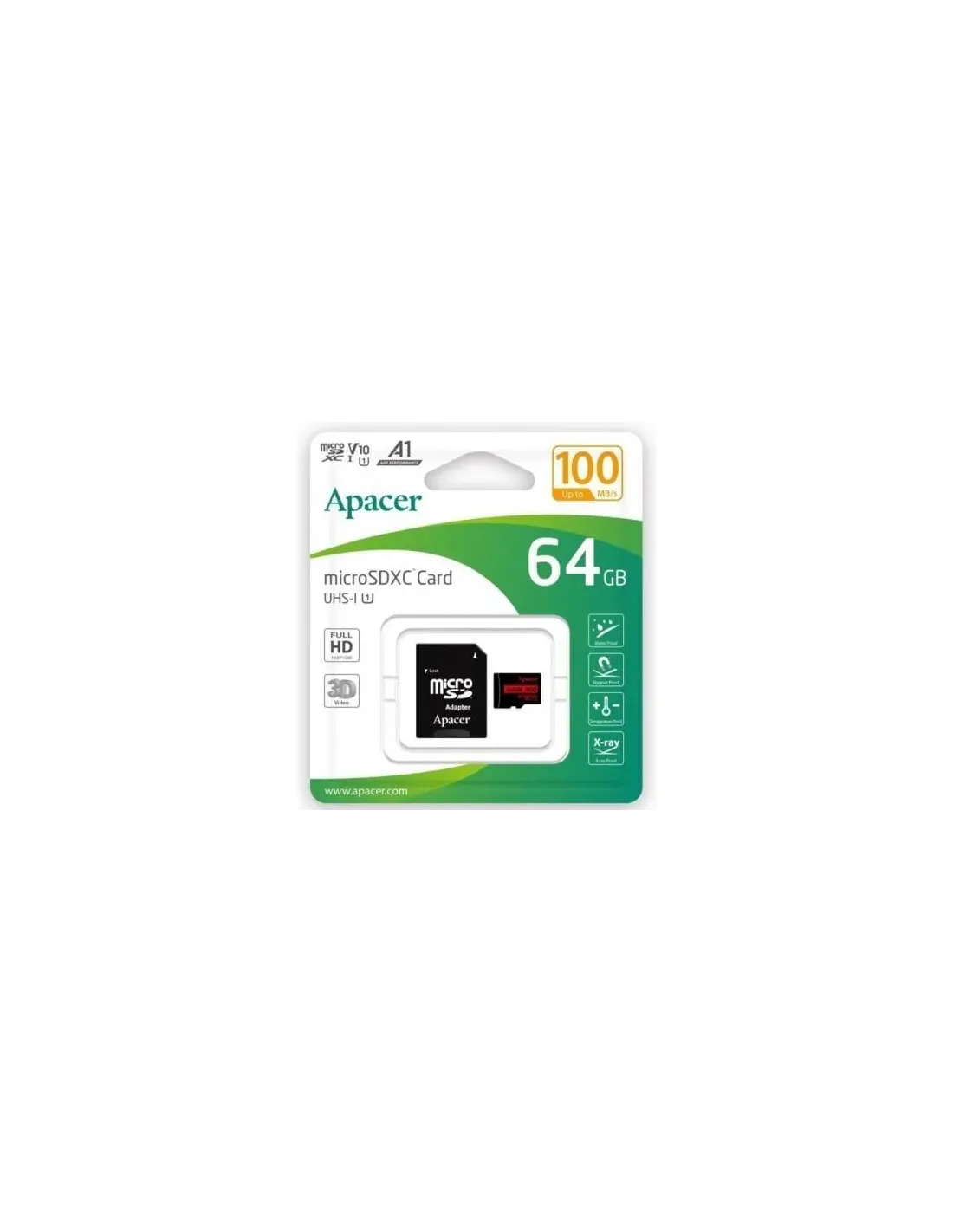 Tarjeta de Memoria Apacer 64GB XC UHS 1 con Adaptador/ Clase 10/ 100MBs