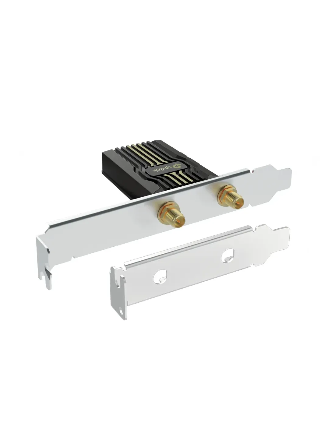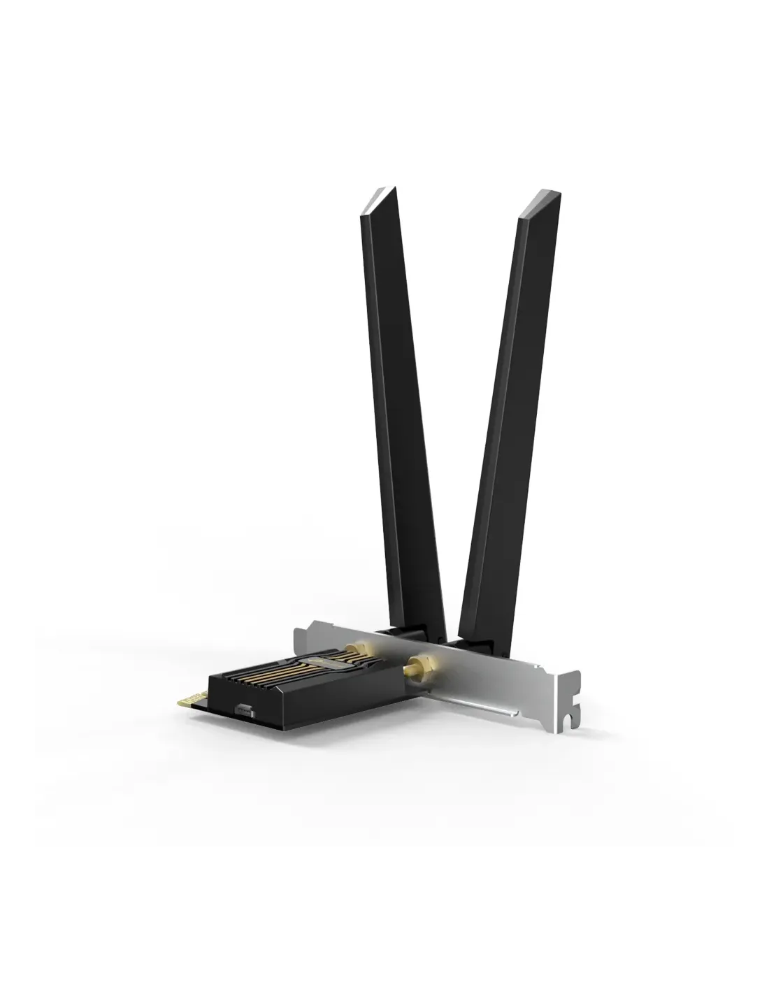 TP-Link Archer TBE552E. Tecnología de conectividad: Inalámbrico, Interfaz de host: PCI Express, Interfaz: WLAN / Bluetooth. Rango máximo de transferencia de datos: 5760 Mbit/s, Estándar Wi-Fi: Wi-Fi 7 (802.11be), Banda Wi-Fi: Tribanda (2.4 GHz / 5 GHz / 6 GHz). Tipo de antena: 2x2