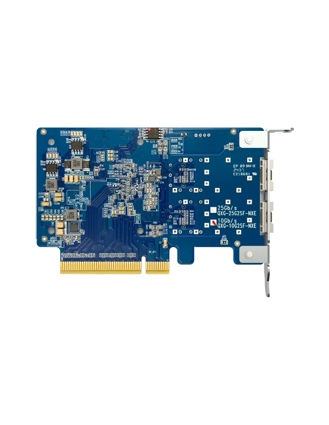 La tarjeta de expansión de red 10GbE QXG-10G2SF-NXE, con dos puertos SFP+ de 10GbE (10G/1G), es eficiente desde el punto de vista energético y asequible. Se trata de una solución ideal para equipos que necesitan acceder de forma simultánea a los datos, para fotógrafos o productores de vídeo que buscan una transmisión de datos rápida y fluida o para aplicaciones de virtualización sensible a la latencia.