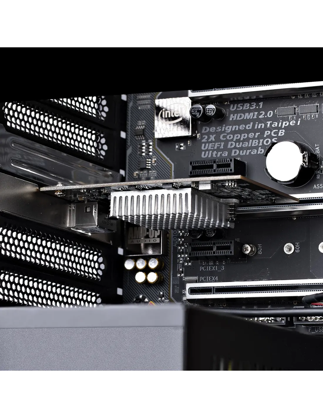 La tarjeta de interfaz de red se conecta a través de una ranura de expansión PCI Express x2 3.0/4.0 (o superior) disponible. La tarjeta se envía con un soporte de perfil estándar e incluye un soporte de perfil bajo para su instalación en diversos sistemas. Esta tarjeta es compatible con Windows, Windows Server y Linux.