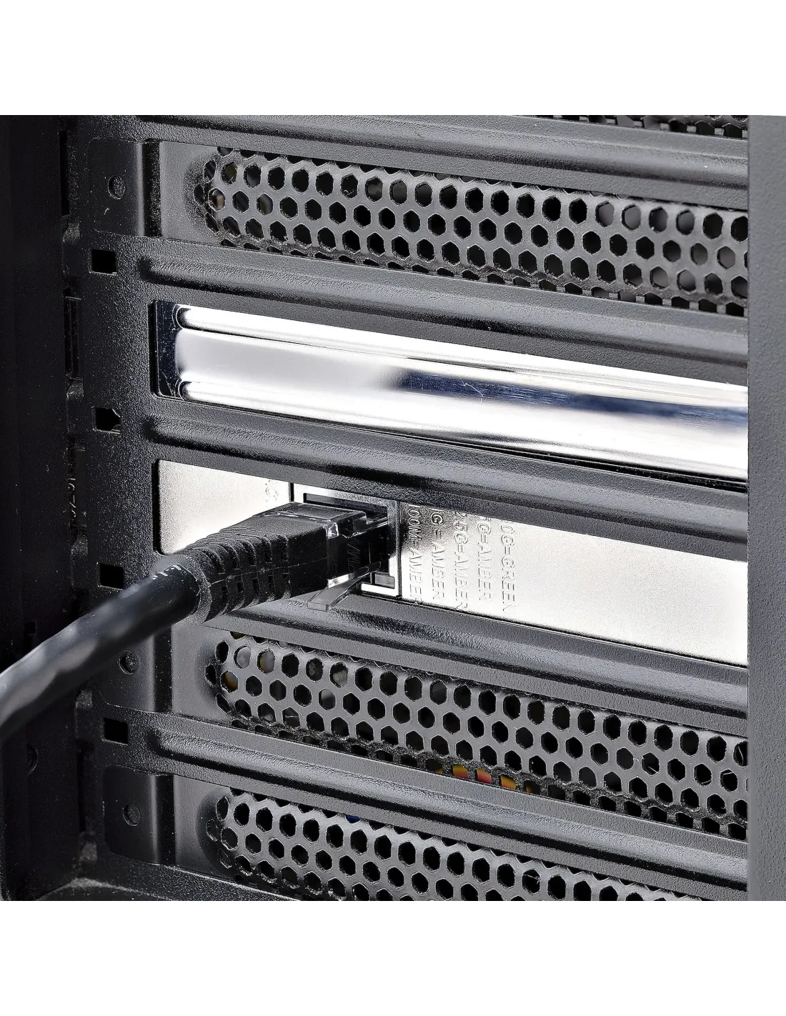 Esta tarjeta de red PCIe proporciona acceso a un mayor ancho de banda. Reduce la ralentización/degradación de la red cuando se ejecutan aplicaciones/procesos con gran cantidad de datos, como FTP, almacenamiento/respaldo en línea y cuando se transmite contenido en línea.