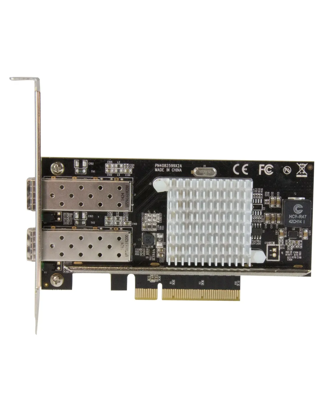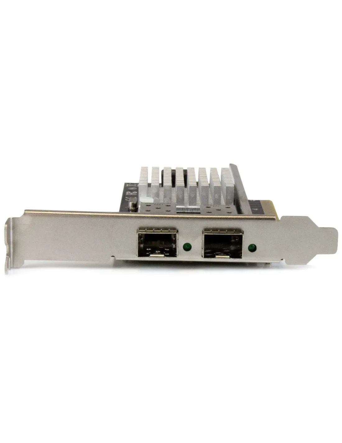 Características de la StarTech.com Tarjeta PCI Express de Red de Fibra de 10GB con 2 Puertos SFP+La tarjeta de red PCI Express de StarTech.com es una solución de alto rendimiento para entornos profesionales que requieren una conectividad de red de alta velocidad y baja latencia. Diseñada para servidores, estaciones de trabajo avanzadas o centros de datos, esta tarjeta incorpora **2 puertos SFP+ abiertos**, ofreciendo **conectividad de 10 Gigabit Ethernet** a través de fibra óptica con una capacidad de ancho de banda total de hasta **20 Gbps en full duplex**.Conectividad de alto rendimiento para redes exigentesGracias a su compatibilidad con una amplia gama de estándares Ethernet y su procesador Intel 82599, esta tarjeta proporciona una transmisión eficiente y fiable incluso bajo cargas intensas de trabajo. Además, soporta tecnologías clave como **jumbo frames**, **LACP** y **VLAN 802.1Q**, garantizando una red optimizada y escalable.2 puertos SFP+ compatibles con 10GBase-LR, SR y LRMVelocidad de transferencia de hasta 10 Gbps por puertoRendimiento total en full duplex: 20 GbpsDiseño compacto y versátilSu factor de forma de perfil bajo y el soporte incluido permiten una fácil instalación en sistemas compactos o servidores rack. Esta tarjeta se integra perfectamente en entornos que requieren fiabilidad, estabilidad térmica y operación continua, soportando temperaturas de hasta **50 °C**.Formato: tarjeta de inserción PCIe 2.0 x8Incluye soporte de bajo perfilCompatible con sistemas Windows y Linux (versión 2.6.24 a 4.11.x LTS)Preparada para integrarse en infraestructuras existentesEsta tarjeta está validada para funcionar con una amplia lista de módulos SFP+ (consultar códigos compatibles) y cumple con normativas internacionales como **RoHS** y **FCC**, lo que garantiza un producto seguro y conforme para entornos profesionales.Compatible con más de 30 referencias de módulos SFP+Normativas soportadas: IEEE 802.1Q, 802.3x, 802.3ae, 802.3adConectividad por cableado de fibra ópticaOtras especificacionesProcesador: Intel 82599Tamaño de marco jumbo: hasta 15.000 bytesDimensiones: 13,5 cm (profundidad) x 12 cm (altura) x 1,8 cm (anchura)Peso: 102 gRango de temperatura operativa: de 5 °C a 50 °CHumedad operativa: 20% - 80% sin condensación