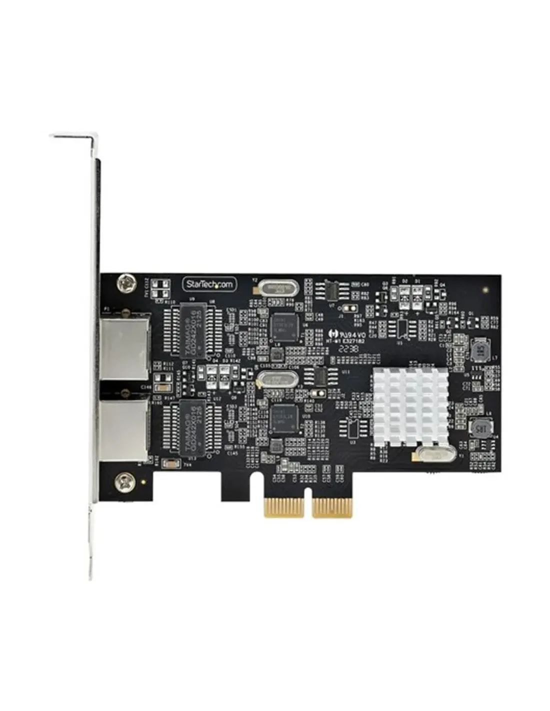 Características de la StarTech.com 2-Port 2.5Gbps NBASE-T PCIe Network CardLa tarjeta de red **StarTech.com con doble puerto RJ-45 y chipset Intel I225-V** es una solución de alto rendimiento para quienes necesitan ampliar la conectividad de sus equipos con tecnología Multi-Gigabit. Diseñada para **entornos profesionales, servidores y estaciones de trabajo exigentes**, ofrece velocidades de hasta 2.5 Gbps por puerto y soporte completo para redes 10/100/1000/2.5G. Su formato compacto y perfil bajo la hace ideal tanto para torres como para equipos compactos.Conectividad Multi-Gigabit en formato compactoGracias a sus dos puertos 2.5GBase-T, esta tarjeta proporciona **una conexión rápida y estable** para aplicaciones intensivas en red, como transferencias de datos, virtualización o backup en red. Su interfaz PCIe 2.0 x2 garantiza una comunicación fluida con la placa base, mientras que su compatibilidad con marcos gigantes mejora el rendimiento de red.2 puertos RJ-45 10/100/1000/2.5GBase-TInterfaz PCI Express 2.0 x2Velocidad de transferencia de hasta 2.5 Gbps por puertoChip Intel I225-V con funciones avanzadasEquipada con el confiable chipset **Intel I225-V**, esta tarjeta soporta funciones clave como **Wake-on-LAN (WOL), PXE boot, VLAN y tecnología Intel vPro**, lo que la hace ideal para implementaciones empresariales. Además, su soporte para funciones de red avanzadas mejora la eficiencia y seguridad del sistema.Compatible con Intel vPro y arranque PXESoporta Jumbo Frames (hasta 9000 bytes)Auto MDIX, negociación automática y soporte VLANDiseño de perfil bajo y amplia compatibilidadIncluye soporte para montaje en chasis de perfil bajo, lo que permite su instalación en carcasas compactas sin perder rendimiento. Además, es compatible con **Windows 10/11, Windows Server 2019/2022 y distribuciones Linux LTS a partir del kernel 5.8**.Diseño compacto: 11 x 1.8 x 12 cmIncluye soporte de bajo perfilCompatible con sistemas Windows y LinuxFiabilidad y garantía de por vidaEsta tarjeta de red cuenta con **garantía de por vida por parte del fabricante**, lo que asegura una inversión duradera para entornos profesionales. Además, cumple con una amplia gama de normativas internacionales como IEEE 802.3 y RCM.Fabricada bajo normativas IEEE y WEEEIndicadores LED de actividad, enlace y velocidadSoporte técnico de por vidaOtras especificacionesTipo de cableado compatible: Ethernet 10Base-T, 100Base-TX, 1000Base-T, 2.5GBase-TProtocolo soportado: Ethernet, Fast Ethernet, Gigabit Ethernet, 2.5 Gigabit EthernetTemperatura operativa: de 0 °C a 55 °CHumedad operativa: 5% - 90% RHPeso: 60 g
