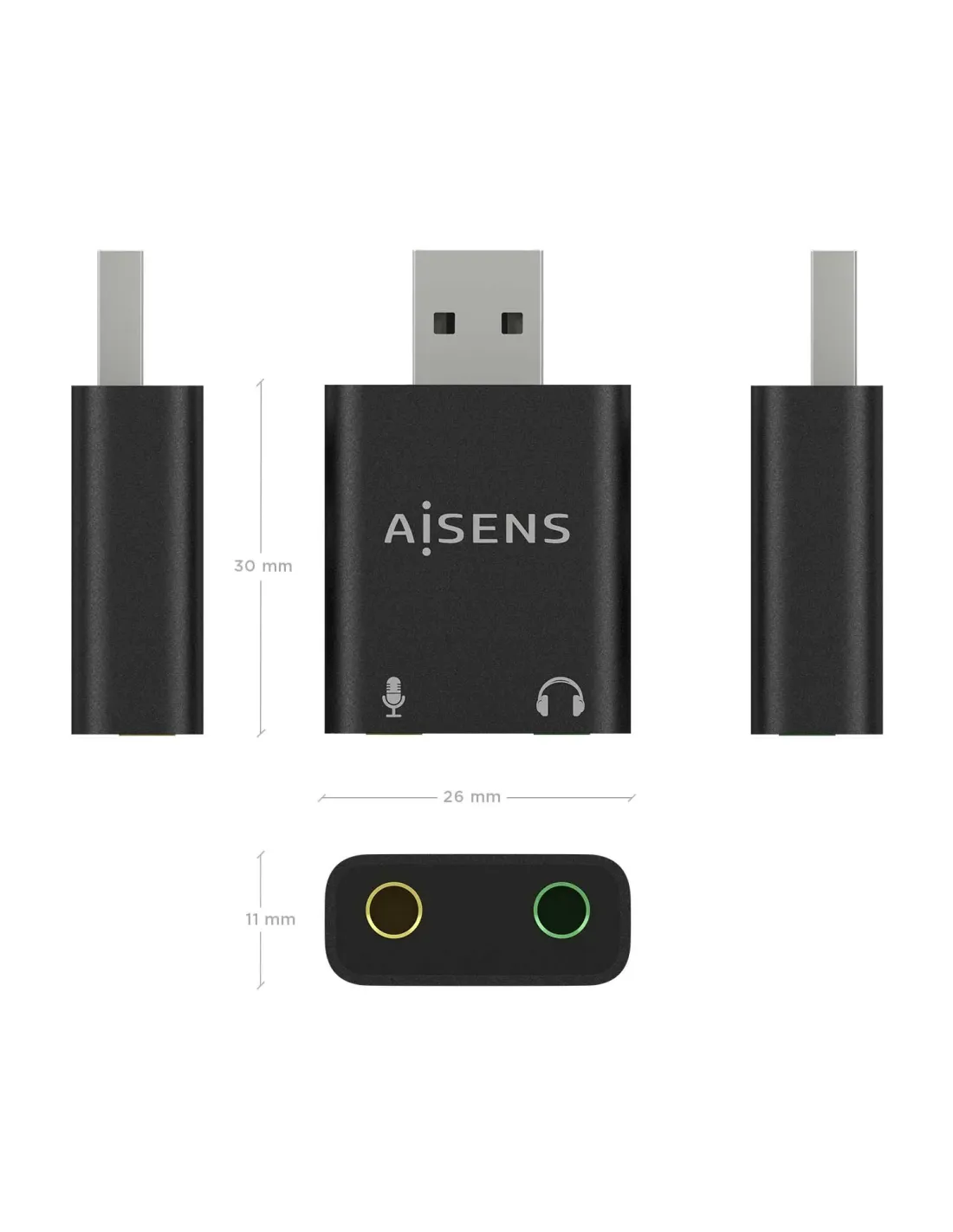 CONVERSOR AISENS USB-A A AUDIO 48KHZ USB-A/M-2XJACK 3.5/H NEGRO