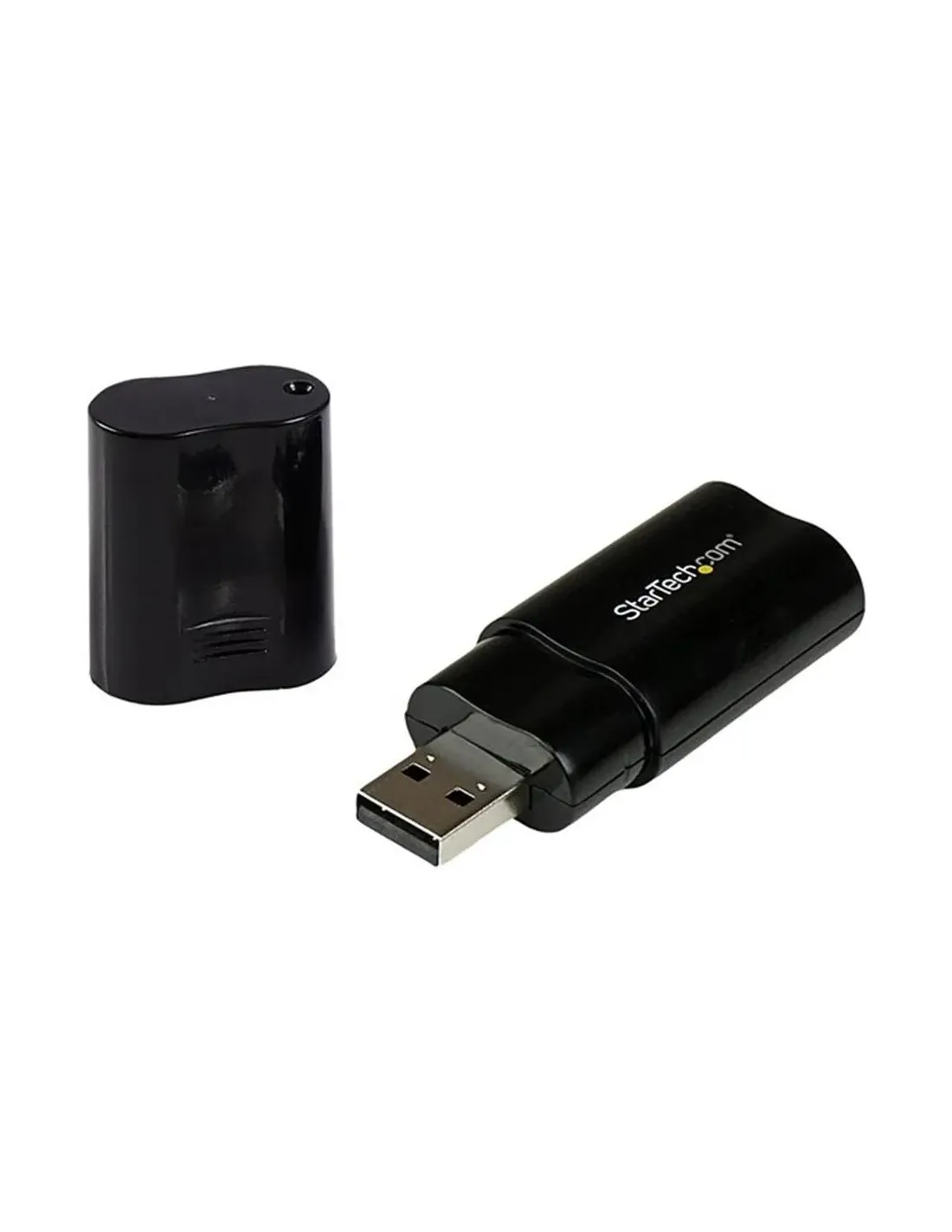 Características de la StarTech.com Tarjeta de Sonido Estéreo USB Externa Adaptador Convertidor - NegroLa tarjeta de sonido externa StarTech.com USB 2.0 es una solución práctica y eficiente para añadir o reemplazar la funcionalidad de audio en tu equipo. Diseñada para usuarios que necesitan una conectividad de sonido sencilla y fiable, este adaptador permite disfrutar de audio estéreo tanto en ordenadores de sobremesa como portátiles, sin necesidad de abrir el equipo.Audio estéreo de fácil instalaciónGracias a su interfaz USB 2.0, esta tarjeta de sonido ofrece una instalación rápida y sin complicaciones. Es ideal para sustituir una tarjeta de sonido interna defectuosa o para añadir capacidad de audio a dispositivos que no la incluyen.Modo de salida de sonido estéreoConexión USB 2.0 plug & playNo requiere instalación internaConectividad versátil para audio y micrófonoIntegra entradas y salidas de audio de 3,5 mm, lo que permite conectar auriculares, altavoces o micrófonos de forma sencilla. Es una opción ideal tanto para uso doméstico como profesional.1 x entrada de micrófono (jack 3,5 mm)1 x salida de audio (jack 3,5 mm)Compatibilidad con periféricos de audio estándarAmplia compatibilidad con sistemas operativosEste adaptador destaca por su compatibilidad multiplataforma, funcionando con una amplia variedad de sistemas operativos Windows, Linux y macOS. Esto lo convierte en una solución versátil para diferentes entornos de trabajo.Compatible con Windows (desde 2000 hasta Windows 11)Soporte para Linux (kernel 3.5 o superior y versiones LTS)Compatible con macOS desde 10.6 hasta macOS 13Diseño compacto y ligeroSu formato externo compacto facilita el transporte y uso en cualquier lugar. Con un diseño discreto en color negro, es perfecto para llevar junto a tu portátil o utilizar en espacios reducidos.Dimensiones: 4 x 8 x 1,5 cmPeso ligero de 54 gDiseño compacto y portátilOtras especificacionesTipo de dispositivo: Tarjeta de sonido externaColor: NegroCumplimiento de normas: FCC, RoHSIncluye controladores y utilidades