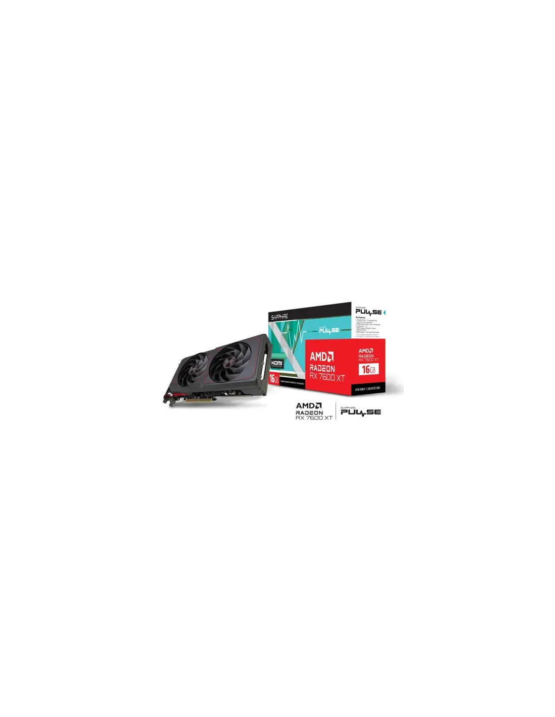 VGA SAPPHIRE PULSE RADEON RX 7600 XT GAMING OC 16GB,AMD,RX7600XT,16GB,GDDR6,128BIT,2HDMI+2DP (2 VENTILADORES)