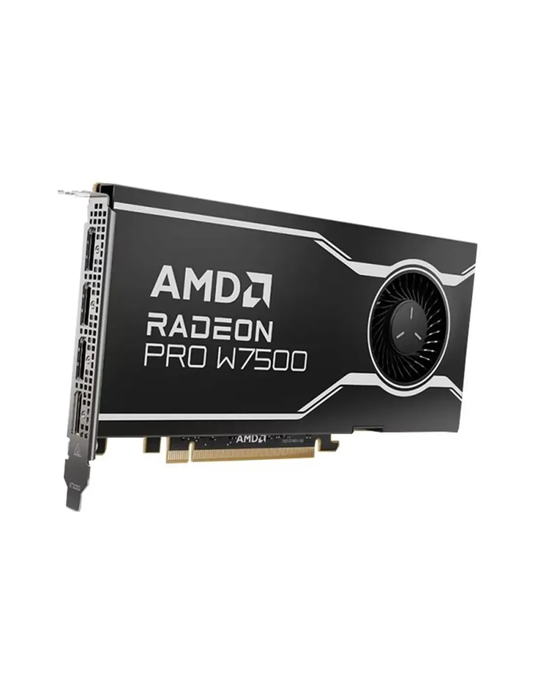```- TIPO DE DISPOSITIVO Tarjeta gráfica - MOTOR GRÁFICO AMD Radeon Pro W7500 - TECNOLOGÍA DE PROCESO 6 nm - PROCESADORES STREAM 1700 - TIPO DE BUS PCI Express 4.0 x8 - INTERFACES 4 x DisplayPort - MEMORIA Tamaño: 8 GB Tipo: GDDR6 SDRAM Ancho de bus: 128-bit Ancho de banda: 172 GBps - API COMPATIBLES DirectX 12 Ultimate OpenGL 4.6 OpenCL 2.0 Vulkan 1.3 - CARACTERÍSTICAS DESTACADAS HDR Ready Compatibilidad con pantalla 8K AMD Viewport Boost AMD Remote Workstation Radeon Media Engine Radeon VR Ready Creator Radeon ProRender Color de 10 bits y 12 bits 3D Stereo Connectivity Compatibilidad con codificación y decodificación AV1 Ray tracing por hardware 28 Ray Accelerators 28 unidades de registro AMD Infinity Cache Rendimiento pico de precisión media (FP16): 24.4 Tflops Rendimiento pico de precisión simple (FP32): 12.2 Tflops - CONSUMO ELÉCTRICO 450 vatios - SISTEMAS OPERATIVOS COMPATIBLES Microsoft Windows 10 / 11 Linux (64 bits) - GARANTÍA Garantía limitada - 3 años ```