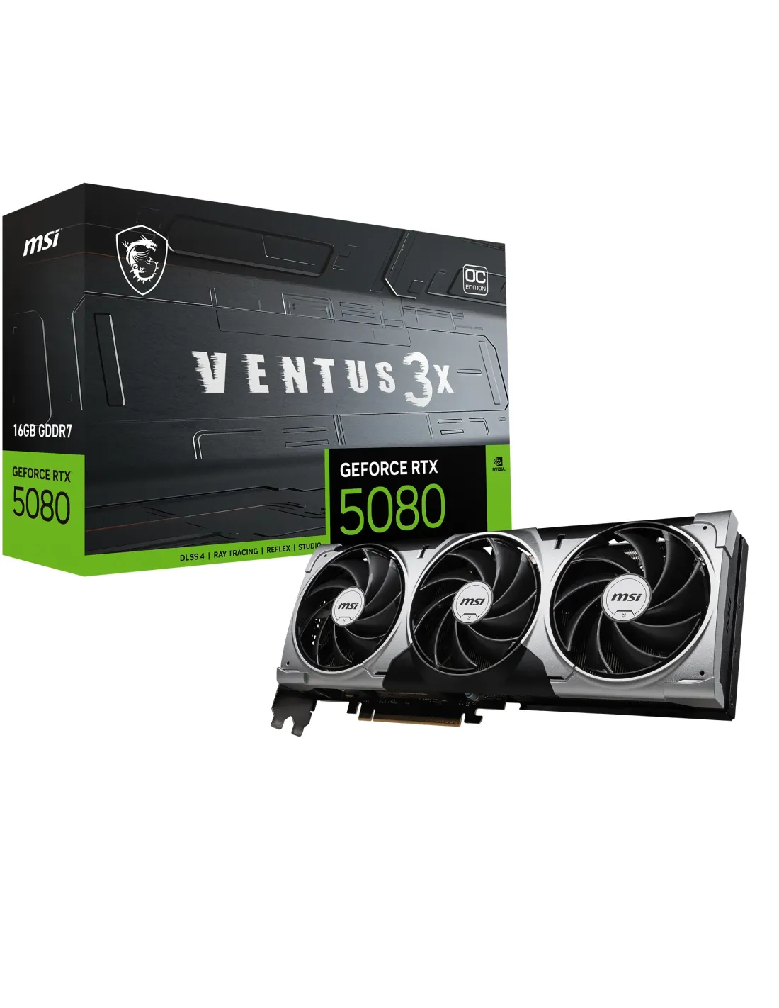 VGA MSI RTX 5080 16G VENTUS 3X OC,NV,RTX5080,16GB,GDDR7,256BIT,1HDMI+3DP,TORX FAN 5.0 (3 VENTILADORES)