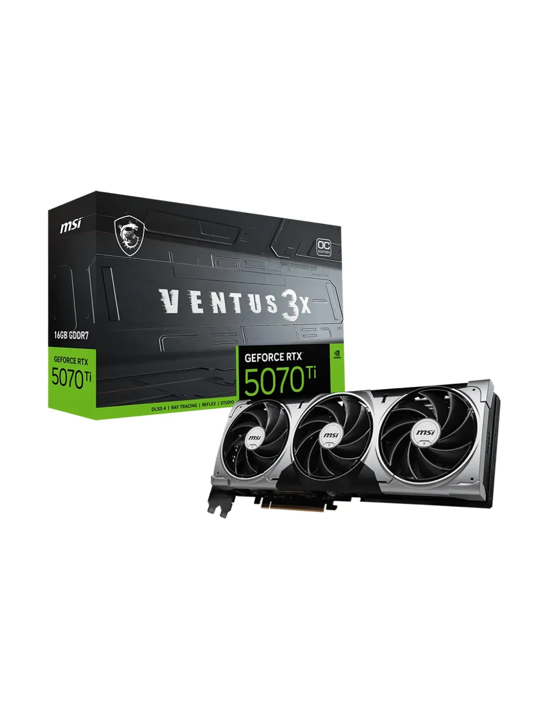 VGA MSI RTX 5070 TI 16G VENTUS 3X OC,NV,RTX5070TI,16GB,GDDR7,256BIT,1HDMI+3DP,TORXFAN 5.0 (3 VENTILADORES)