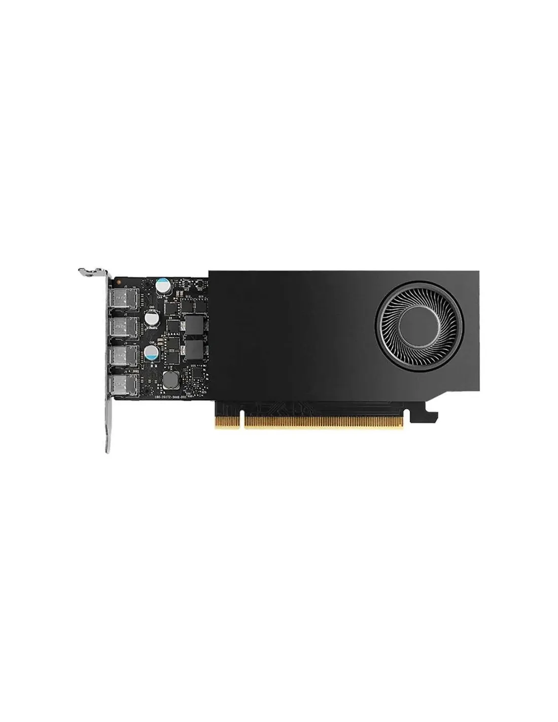 Características de la Tarjeta Gráfica NVIDIA Quadro RTX A400 4GB GDDR6 LP BULKLa NVIDIA RTX A400 es una tarjeta gráfica profesional diseñada para estaciones de trabajo que requieren rendimiento gráfico fiable y eficiente en aplicaciones de diseño, visualización y simulación. Basada en la arquitectura NVIDIA Ampere, ofrece una combinación equilibrada entre potencia de procesamiento, eficiencia energética y formato compacto, lo que la convierte en una solución ideal para entornos profesionales con espacio limitado.Arquitectura NVIDIA Ampere para entornos profesionalesLa arquitectura NVIDIA Ampere proporciona un rendimiento gráfico avanzado optimizado para aplicaciones profesionales. Gracias a su eficiencia y capacidad de cálculo, esta GPU permite trabajar con modelos complejos, visualización avanzada y flujos de trabajo exigentes con gran estabilidad.Arquitectura NVIDIA AmpereOptimización para aplicaciones profesionalesProcesamiento gráfico eficiente y estableMemoria GDDR6 de alto rendimientoEquipada con 4GB de memoria GDDR6, la RTX A400 permite gestionar proyectos gráficos complejos y grandes volúmenes de datos con mayor fluidez. Esta memoria de alta velocidad mejora el rendimiento en aplicaciones de diseño, modelado y visualización profesional.Capacidad de memoria: 4GBTipo de memoria: GDDR6Diseñada para cargas de trabajo gráficas exigentesConectividad avanzada para múltiples monitoresGracias a sus cuatro puertos Mini DisplayPort 1.4a, esta tarjeta permite conectar hasta cuatro monitores con resolución 4K. Esta configuración multipantalla facilita la productividad en entornos profesionales donde se requiere visualizar grandes volúmenes de información o trabajar con varias aplicaciones simultáneamente.4 x Mini DisplayPort 1.4aCompatible con monitores 4KSoporte para configuraciones multipantallaDiseño compacto y eficienteLa RTX A400 destaca por su factor de forma compacto de ranura única y altura completa, lo que facilita su integración en estaciones de trabajo con espacio reducido. Además, su consumo máximo de 50W permite mantener un sistema eficiente energéticamente sin renunciar a un buen rendimiento gráfico.Diseño de ranura única (single slot)Perfil bajo.Consumo máximo de energía: 50WRefrigeración activa para mayor estabilidadSu sistema de refrigeración activa mantiene la tarjeta funcionando a temperaturas óptimas incluso bajo cargas de trabajo intensivas. Esto contribuye a mejorar la estabilidad, durabilidad y rendimiento sostenido en entornos profesionales.Sistema de enfriamiento activoTemperaturas controladas bajo cargaMayor estabilidad en uso prolongadoInterfaz PCIe 4.0 de alta velocidadLa interfaz PCI Express 4.0 x8 proporciona un mayor ancho de banda para la transferencia de datos entre la tarjeta gráfica y el sistema, permitiendo aprovechar al máximo el rendimiento en aplicaciones profesionales modernas.Interfaz PCIe 4.0 x8Mayor velocidad de transferencia de datosCompatibilidad con estaciones de trabajo modernas