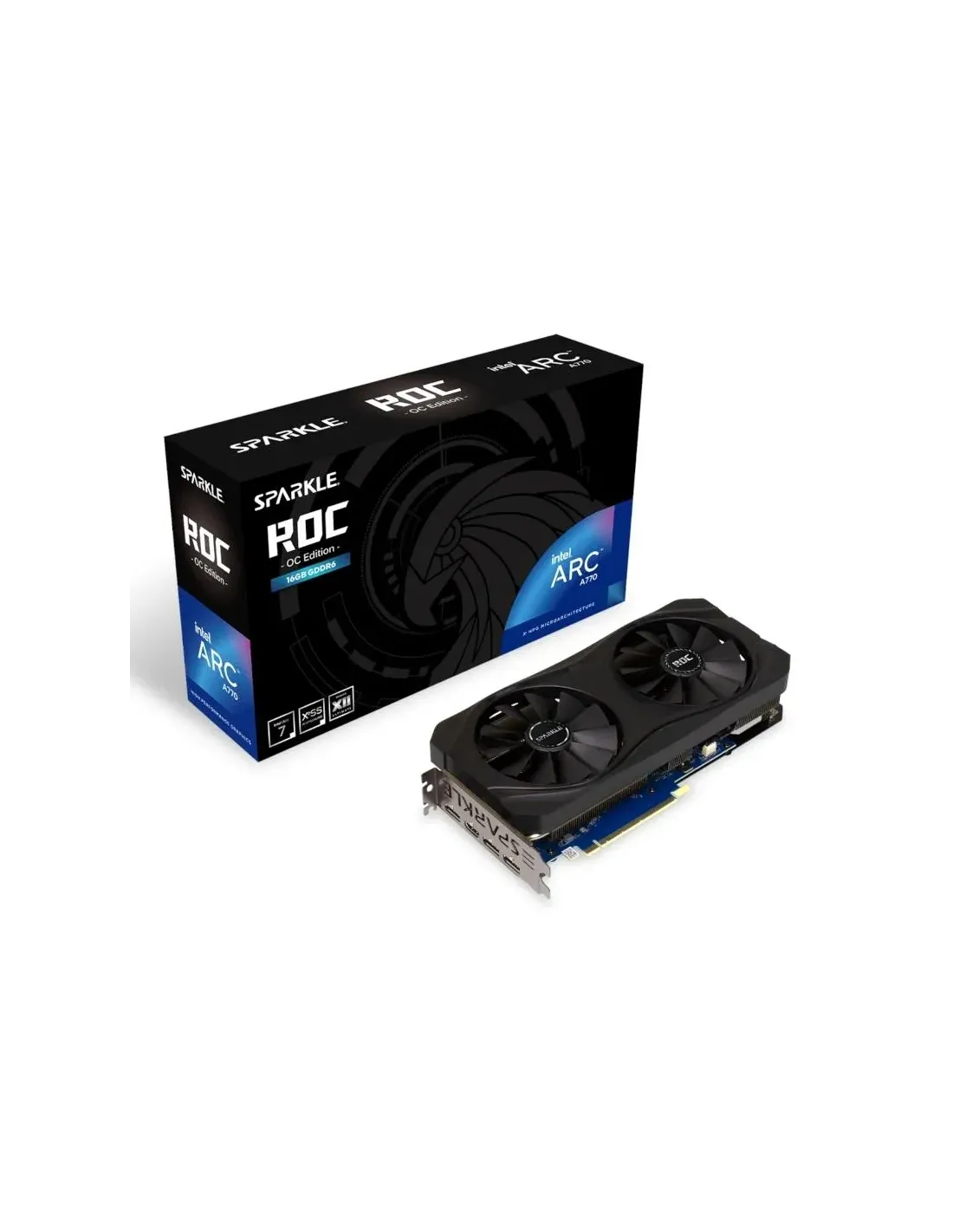 Marca SPARKLE Modelo SA770R-16GOC Chipset - Intel Arc 770 - Boost Clock: 2300MHz - Xe-Core: 32 - Unidades de Ray Tracing: 32 - Motores Intel XMX: 512 - Motores vectoriales Xe: 512 Memoria - Tipo de Memoria: GDDR6 - Tamaño de Memoria (MB): 6 GB - Ancho de banda de memoria gráfica: 560 GB/s - Velocidad de Memoria: 17.5 Gbps - Memory Bus: 256-bit Tipo de Slot - PCI Express 4.0 x16 Conectores - 1 x HDMI 2.0b (Máx.): 4096 x 2160@60Hz - 3 x DisplayPort 2.0* (Máx.): 7680 x 4320@60Hz *Diseñado para DP2.0, certificación pendiente de lanzamiento VESA CTS Otras características - 2 x ventiladores con rodamiento de bolas dobles de 100 mm - Placa posterior de metal, preinstalada - Ray Tracing - Sombreado de tasa variable (VSR) - DirectX 12 Ultimate - Vulcano 1.3 - OpenGL 4.6 - OpenCL 3.0 - Sincronización adaptativa - Codificación / decodificación AV1 - VP9 Bitstream y decodificación - Hipercómputo Intel Deep Link - Hipercodificación Intel Deep Link - Asistencia de transmisión Intel Deep Link - Consumo: 225 W - Ancho: 2.5 slot Requisitos - Fuente de alimentación de 650 Watts o más - Windows 11, Windows 10, Ubuntu 22.04 - Placa base compatible con PCI Express 3.0, 4.0 o 5.0 con una ranura de gráficos Dimensiones y peso - 281 x 131 x 51 mm - 880 g Fecha Revisión 05-09-2024 por RTY