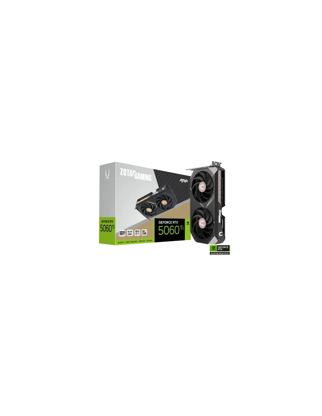 • NVIDIA GeForce RTX 5060 Ti GP• 4608 CUDA core• 16GB GDDR7 memor• 128-bit memory bu• Engine boost clock: 2632 MH• Memory clock: 28 Gbp• PCI Express 5.0 xSOFTWARE• Game Ready and NVIDIA Studio Driver• PCI Express® Gen • Microsoft DirectX® 12 Ultimat• Vulkan RT APIs, Vulkan 1.• OpenGL 4.• Windows 11 / Windows 10 64-bit (v180November 2018 or laterCONNECTION• 3 x DisplayPort 2.1b with UHBR2(up to 4K 480Hz or 8K 165Hz with DSC• 1 x HDMI® Connecto(Supports 4K 480Hz HDR or 8K 120Hz HDwith DSC, and Gaming VRR aspecified in the HDMI 2.1b Specification• HDCP 2.3 suppor• Up to 4 displays simultaneouslPOWER REQUIREMENT• 650-watt power supply recommende• 180-watt max power consumptio• 1 x 8-pin power inpuINSIDE THE BO• ZOTAC GAMING GeForce RT5060 Ti 16GB AM• User ManuaDIMENSIONProduct• Length: 220.5 mm (8.7 in• Height: 120.25 mm (4.7 in• Width: 2 slot (41.6 mm) (1.6 inBox• Height: 283mm (11.1 in• Width: 218mm (8.6 in• Depth: 83mm (3.3 in