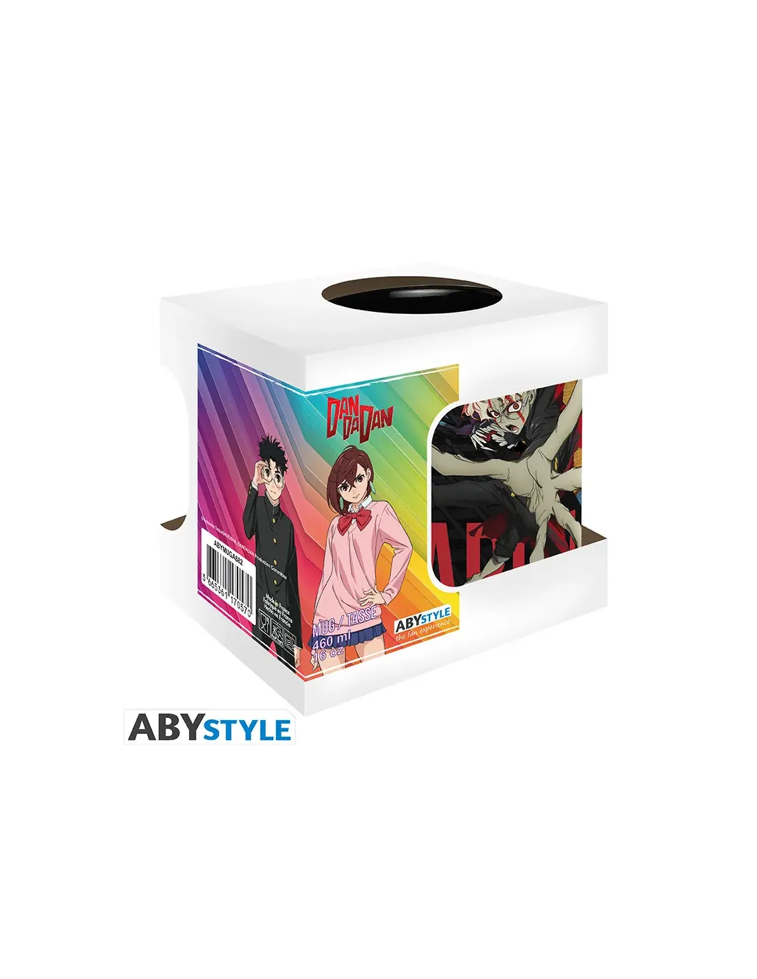Características de la DAN DA DAN Mug Infernal Duo Big SizeSumérgete en la acción sobrenatural de DAN DA DAN con esta **taza oficial de gran formato**, protagonizada por **Momo y Okarun en plena batalla**. Diseñada por ABYstyle, es el accesorio perfecto para fans del manga que quieren empezar el día con energía y estilo. Ideal para el café de la mañana o tus bebidas favoritas, esta taza une funcionalidad con un diseño impactante inspirado en el caos infernal de la serie.Diseño exclusivo para fans del caos sobrenaturalLa ilustración de esta taza captura a la perfección la intensidad de DAN DA DAN, con **Momo y Okarun en plena acción**. Su acabado de alta calidad garantiza que los colores y detalles se mantengan intactos con el uso diario.Diseño oficial licenciado por ABYstyleImpresión de alta calidad, resistente al desgasteInspirada en una de las escenas más icónicas del mangaFormato king size para verdaderos fanáticosCon una capacidad de **460 ml**, esta taza es perfecta para quienes necesitan un extra de energía. Además, está fabricada en **cerámica resistente**, apta tanto para microondas como para lavavajillas, combinando comodidad y durabilidad.Gran capacidad: 460 mlApta para microondas y lavavajillasFabricada en cerámica de alta resistenciaOtras especificacionesMarca: ABYstyleLicencia: DAN DA DANTipo de producto: Taza de cerámica