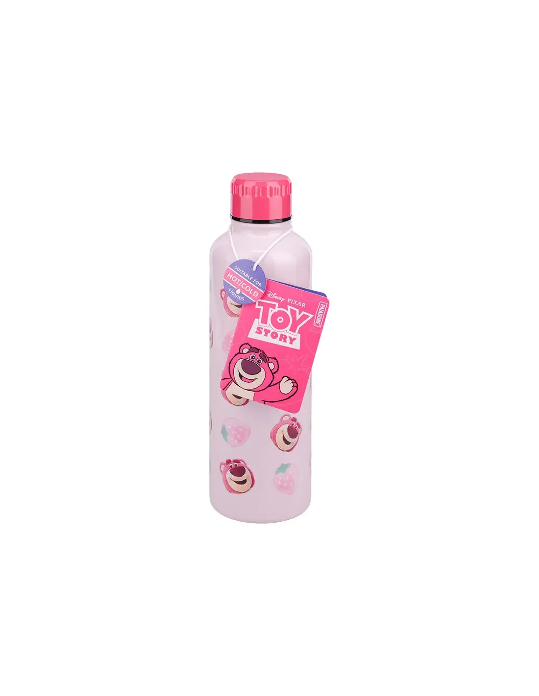 - CARACTERÍSTICAS PRINCIPALES Botella de agua metálica de 500 ml inspirada en Lotso, el personaje de Toy Story.- ESPECIFICACIONES TÉCNICAS - Capacidad: 500 ml - Material: Metal - Código EAN: 5056577754964 - Código SKU del proveedor: PP14524TS - Código Intrastat: 7323-9300 - Peso: 0,27 kg- LICENCIA Y FABRICANTE - Licencia: Disney - Toy Story - Fabricante: Paladone
