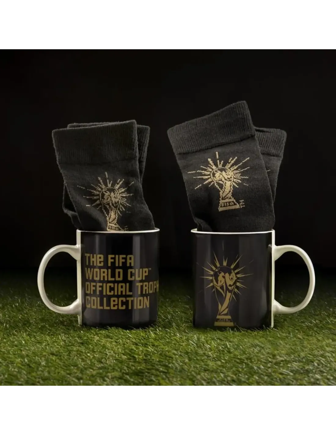 ¡El perfecto regalo para los amantes del futbol!Taza fabricada en cerámica. Mide aproximadamente 9,5 x 8 x 12 cm.Incluye un par de calcetines de la FIFA. En color blanco y dorado.Los calcetines unisex de talla única se ajustan a las tallas:UK/AU/NZ 7-11EU 41-46USA 8-12