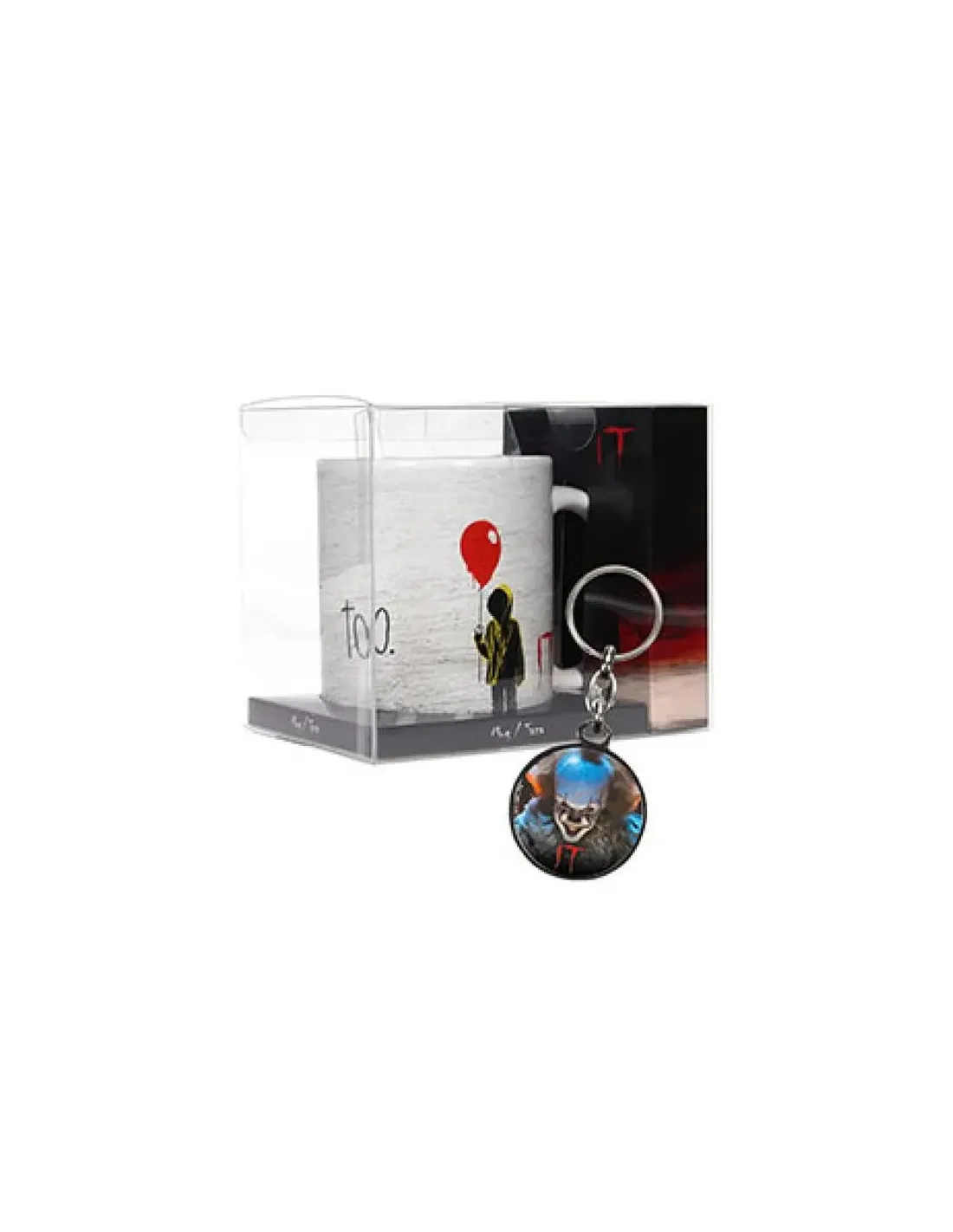 Características de la Taza YOU'LL FLOAT TOO + Regalo Llavero Metálico ITSumérgete en el universo de **IT**, la icónica película de terror de Stephen King, con esta exclusiva **taza con diseño de Pennywise**. Ideal para los fans del cine de horror, esta taza no solo destaca por su aspecto impactante, sino que además incluye un **llavero metálico de regalo**, para que lleves el espíritu del terror contigo a todas partes.Diseño aterrador para verdaderos fansInspirada en la famosa frase "**You'll float too**" y en el temido payaso Pennywise, esta taza presenta un diseño visualmente potente que no pasará desapercibido. Perfecta para acompañar tus maratones de películas o para decorar tu escritorio con un toque tenebroso.Diseño oficial inspirado en la película ITProtagonista: Pennywise, el payaso más terrorífico del cineIdeal como regalo para fans del género de terrorLlavero metálico de regalo: lleva el miedo contigoComo complemento perfecto, este pack incluye un **llavero metálico de alta calidad** con temática de IT. Un detalle exclusivo para quienes quieren mostrar su pasión por el terror también fuera de casa.Material metálico resistenteDiseño basado en elementos icónicos de la películaPráctico y decorativoOtras especificacionesTipo de producto: Taza + llavero metálicoTemática: Película IT (Stephen King)Licencia oficial