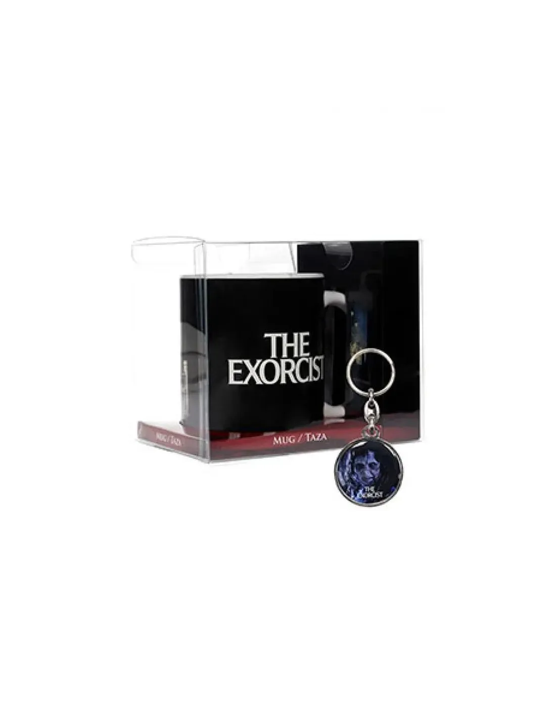 Características del Pack Taza + Llavero Metálico El ExorcistaRevive uno de los grandes clásicos del cine de terror con este exclusivo pack inspirado en **The Exorcist**. Diseñado para los verdaderos amantes del género, este conjunto incluye una **taza con ilustración del icónico póster de la película** y un **llavero metálico de regalo**, ideal para coleccionistas o como detalle original para fans del terror.Taza con diseño exclusivo de El ExorcistaLa taza presenta una impresión de alta calidad con la imagen clásica del cartel de la película, convirtiéndola en una pieza decorativa y funcional para tu día a día. Perfecta para usar en casa, en la oficina o para completar tu colección de cine.Diseño inspirado en el póster original de The ExorcistIdeal para bebidas frías o calientesAcabado resistente y fácil de limpiarIncluye llavero metálico de regaloCompleta el pack un **llavero metálico temático**, incluido sin coste adicional. Un accesorio original para llevar siempre contigo un detalle de tu película favorita o para regalar a otro fan del género.Material metálico resistenteDiseño temático de El ExorcistaIncluido como obsequio en el packUn pack imprescindible para fans del cine de terrorTanto si lo usas como objeto de colección como si buscas un regalo diferente, este pack de **taza + llavero El Exorcista** es una opción perfecta para cualquier fanático del cine de horror clásico.
