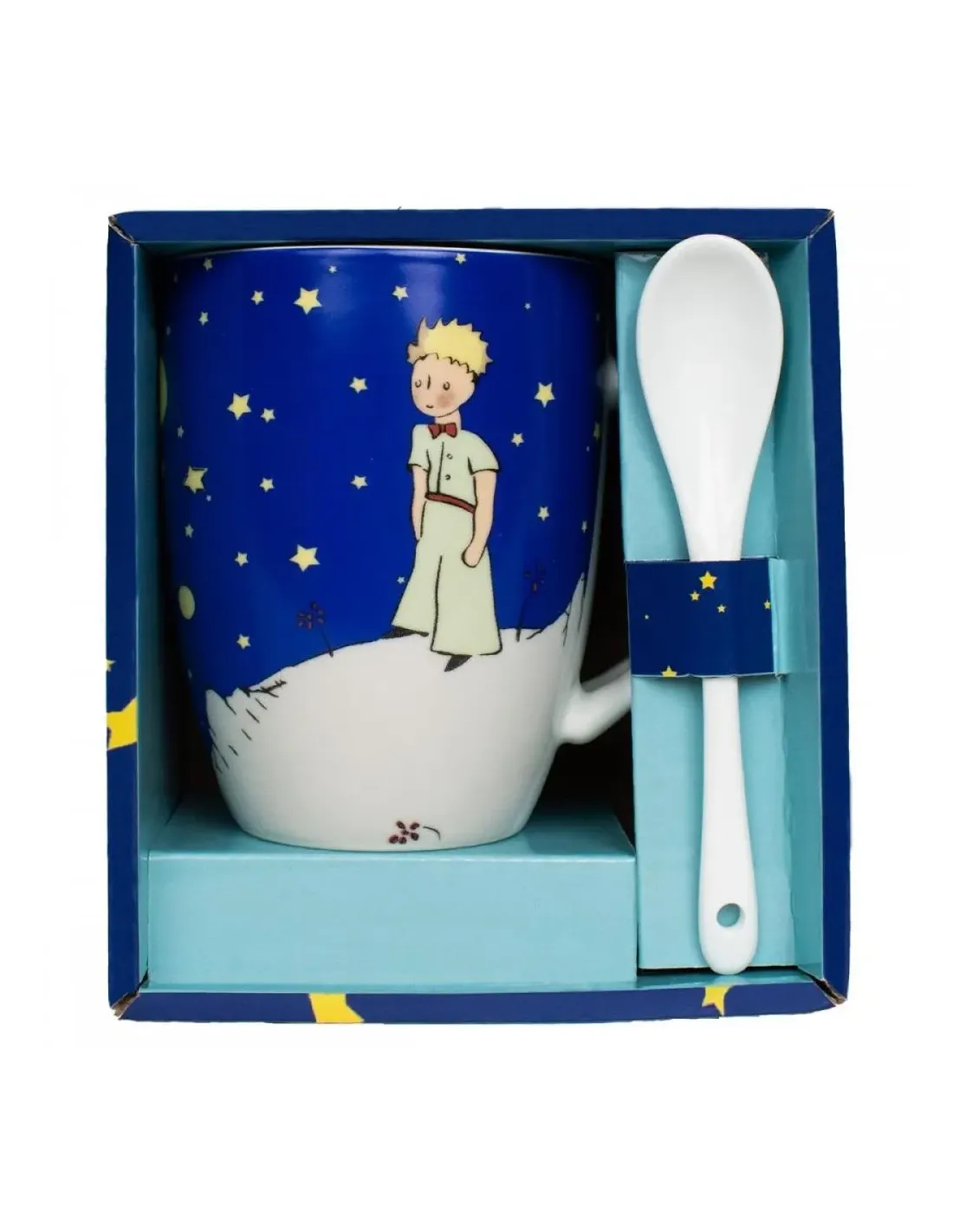 Taza con cuchara enesco el principito bajo el cielo estrellado