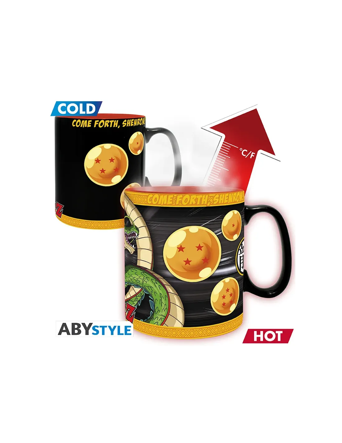 Características de la Taza Termocolora Dragon Ball Z Shenron 460 mlSi eres fan de Dragon Ball Z, esta taza oficial de ABYstyle es el complemento perfecto para tus mañanas. Diseñada con un acabado térmico reactivo, la taza termocolora de Shenron revela una ilustración del legendario dragón cuando viertes una bebida caliente. Con una capacidad de 460 ml, ofrece un diseño exclusivo que mezcla funcionalidad y nostalgia para los seguidores del anime.Diseño mágico que cobra vida con el calorEl verdadero encanto de esta taza reside en su efecto térmico reactivo: al servir café, té o cualquier bebida caliente, el diseño exterior cambia y deja ver a Shenron emergiendo con todo su poder, como si estuviera a punto de conceder deseos. Una experiencia visual que convierte cualquier pausa en algo especial.Diseño que cambia al contacto con líquido calienteInspirada en Shenron, el dragón legendario de Dragon Ball ZLicencia oficial ABYstyleFormato grande y fabricación resistenteCon su capacidad king de 460 ml, esta taza es ideal para quienes disfrutan de bebidas generosas. Fabricada en cerámica de alta calidad, garantiza durabilidad y una excelente conservación del calor. Se presenta en una caja con ventana, perfecta tanto para coleccionistas como para regalar.Material: cerámicaCapacidad: 460 mlPresentación: caja con ventanaRecomendaciones de usoPara conservar el efecto térmico y la calidad del diseño, se recomienda lavar la taza a mano. No es apta para microondas ni lavavajillas.No apta para microondasNo apta para lavavajillasLimpieza manual recomendada