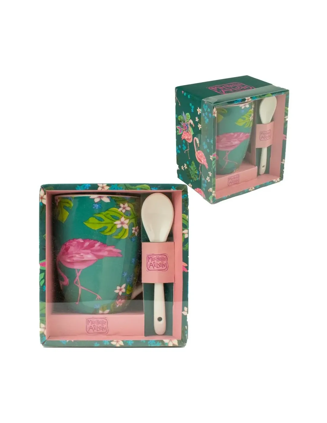 Características de la Taza con cuchara Enesco FlamencoLa taza con cuchara Enesco Flamenco es una opción ideal para quienes buscan combinar funcionalidad y diseño decorativo en su día a día. Con un estilo colorido y alegre protagonizado por un elegante flamenco, este set resulta perfecto tanto para el uso diario como para regalar.Diseño llamativo y originalEsta taza destaca por su estética tropical y vibrante, con ilustraciones de flamencos y motivos florales que aportan un toque fresco y distintivo. Su presentación en caja decorada la convierte en una excelente opción para regalo.Diseño con ilustración de flamencoColores vivos y estilo tropicalPresentación en caja decorativaIncluye cuchara a juegoEl set incorpora una cuchara a juego perfectamente integrada, ideal para remover bebidas como café, té o infusiones. Su diseño coordinado mantiene la armonía visual del conjunto.Cuchara incluida en el setDiseño coordinado con la tazaPráctica para el uso diarioUso práctico y versátilPerfecta para el hogar o la oficina, esta taza ofrece una experiencia cómoda y funcional para disfrutar de tus bebidas favoritas, aportando además un toque decorativo a cualquier espacio.Apta para bebidas calientesIdeal para uso diarioFácil de transportar y almacenar
