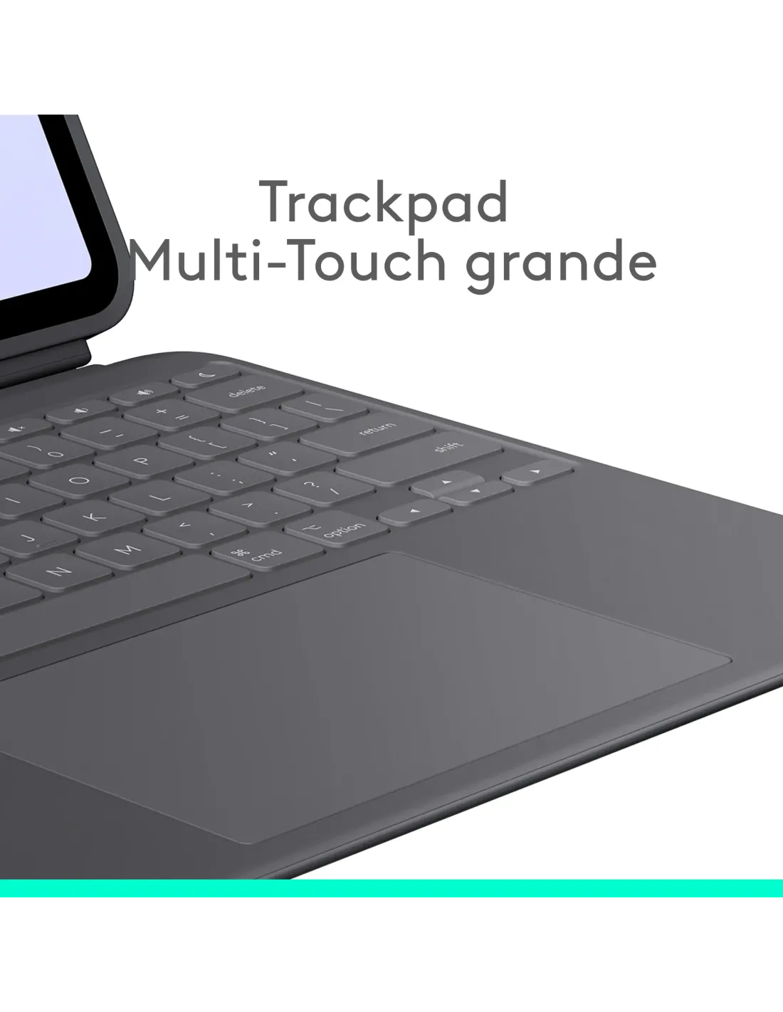 Escribe, dibuja, visualiza y lee con la funda con teclado Combo Touch. Un soporte abatible flexible y un teclado extraíble de tamaño normal ofrecen múltiples modos de uso para cualquier tarea. Llega más lejos con el iPad, usando un trackpad más grande que facilita una experiencia de seguimiento superior e intuitiva con los controles de gestos Multi-Touch habituales.