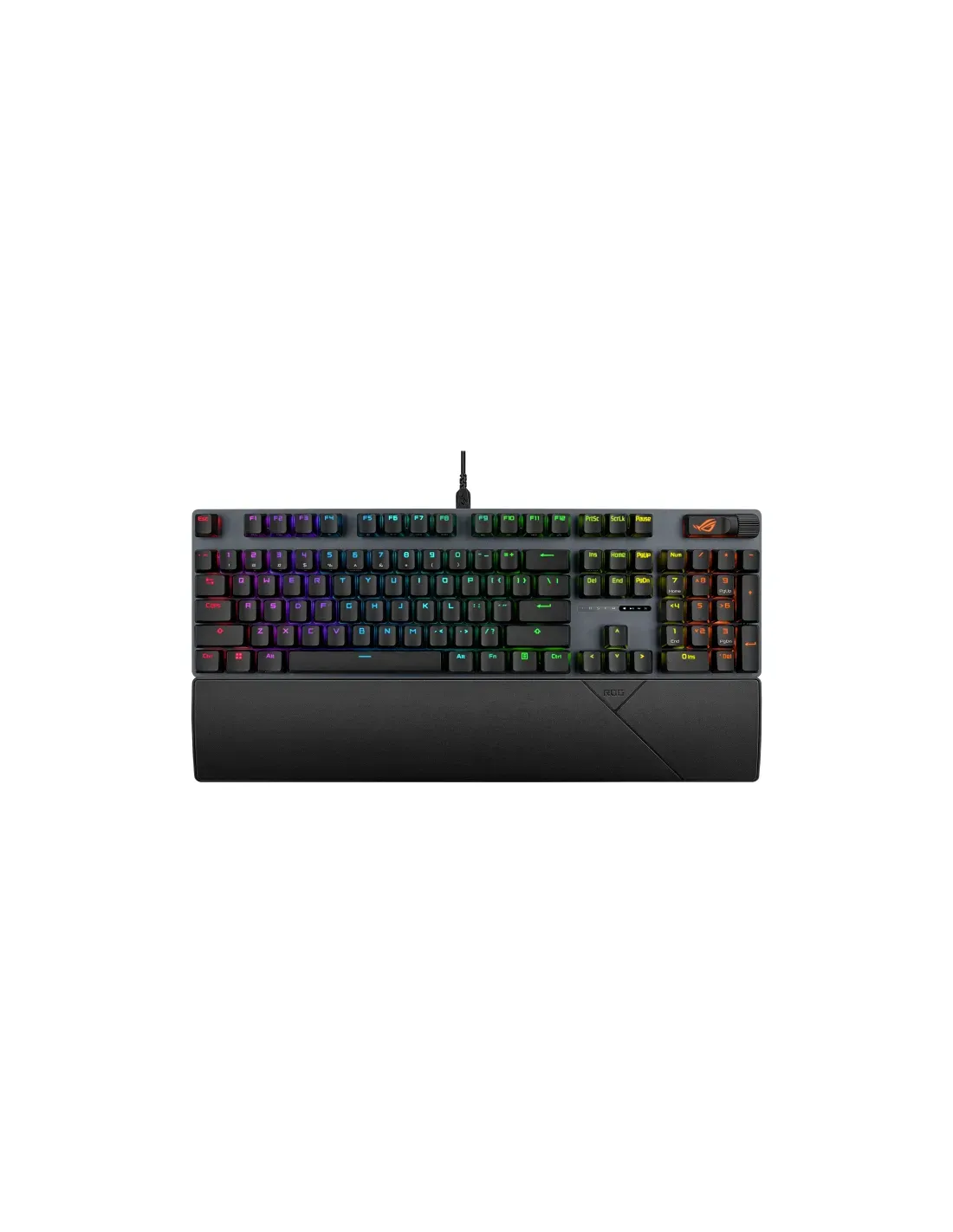 ASUS ROG Strix Scope II X. Formato del teclado: Completo (100%), Tecnología de conectividad: Alámbrico, Interfaz del dispositivo: USB, Interruptor del teclado: Interruptor mecánico. Tipo de retroiluminación: LED RGB, Descansa muñecas. Longitud de cable: 2 m. Uso recomendado: Juego. Color del producto: Negro