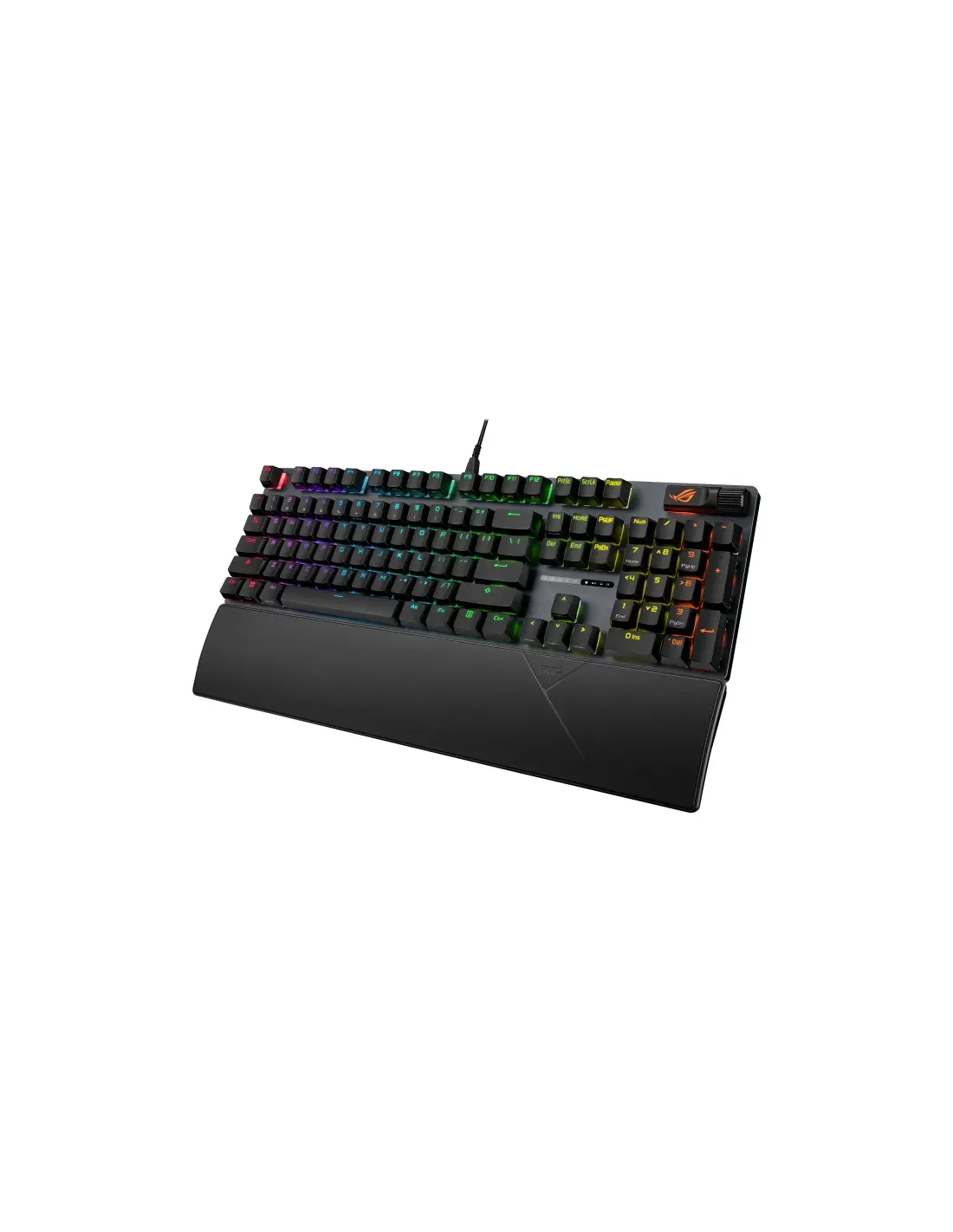 El ROG Strix Scope II X es tu fiel compañero de batalla, con switches mecánicos ROG NX V2 intercambiables en caliente con un ajuste refinado, duraderas teclas PBT de doble disparo o teclas ABS con recubrimiento UV para un tacto premium y resistencia al brillo, controles rápidos multifunción, teclas rápidas de streaming y un reposamuñecas desmontable para una mayor comodidad.