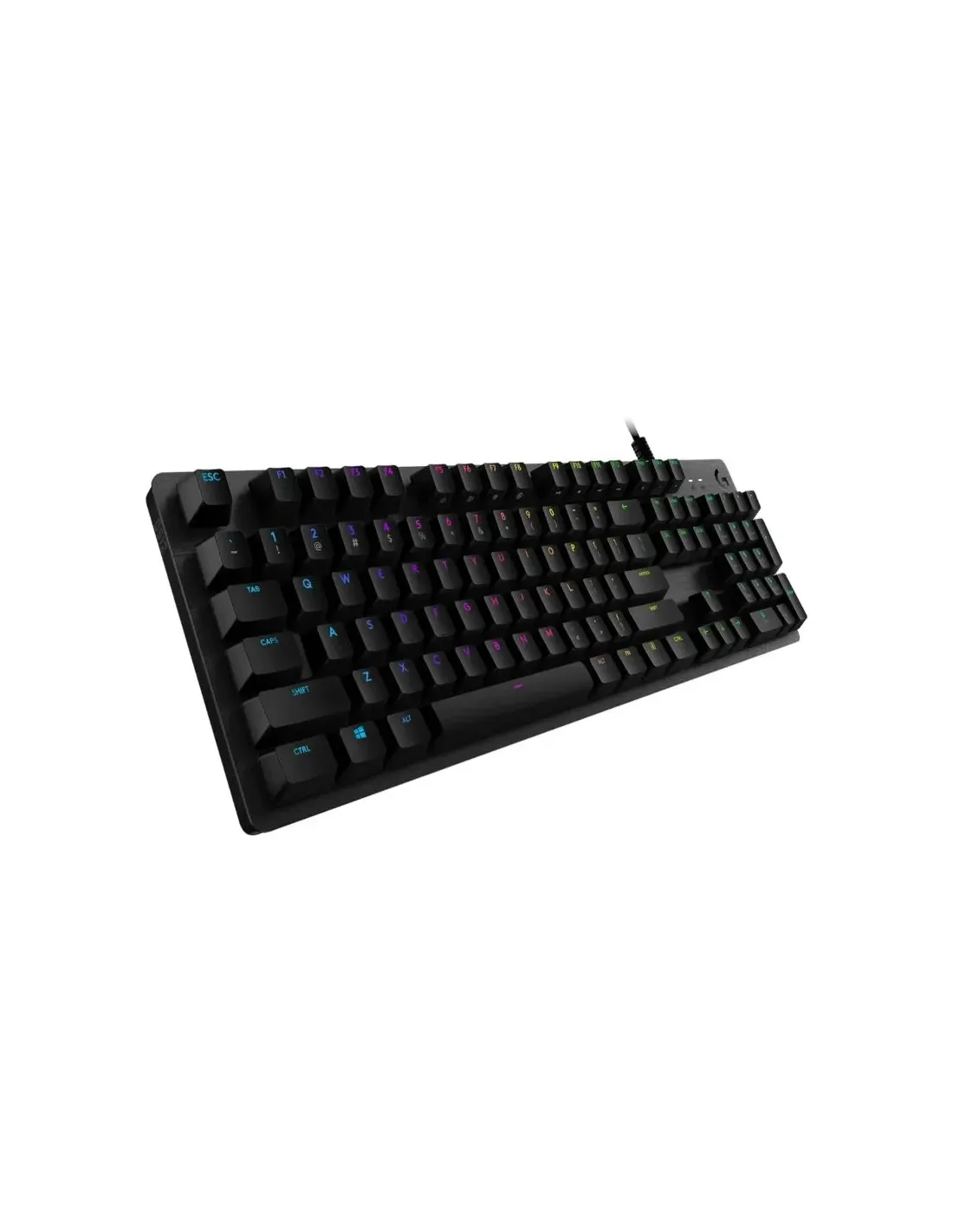 Marca Logitech Modelo 920-009344 Características - Interruptores mecánicos GX Blue: Distancia de actuación: 1,9 mm Fuerza de actuación: 50 g Recorrido total: 4 mm - Tipo de conexión: USB 2.0 - Protocolo USB: USB 2.0 - Puertos USB (integrados): Sí, 2.0 - Indicadores luminosos (LED): 2 (hasta 1080p) - Retroiluminación: Sí, RGB personalizable por tecla - Teclas especiales: Controles de iluminación: FN+F5/ F6/F7 Modo de juego: FN+F8 Controles multimedia: FN+F9/ F10/F11/F12 Controles de volumen: FN+ IMPR PANT/BLOCK DESPL/PAUSA Teclas FN programables mediante Logitech G HUB - Requisitos del sistema: Windows 10, Windows 8.1, Windows 8 oder Windows 7 o posteriores Puerto USB (para teclado) Segundo puerto USB (para conexión de paso de USB) Dimensiones y peso - 445 x 132 x 34,3 mm - 1130 g Fecha de revisión 07-01-2026 por RTY