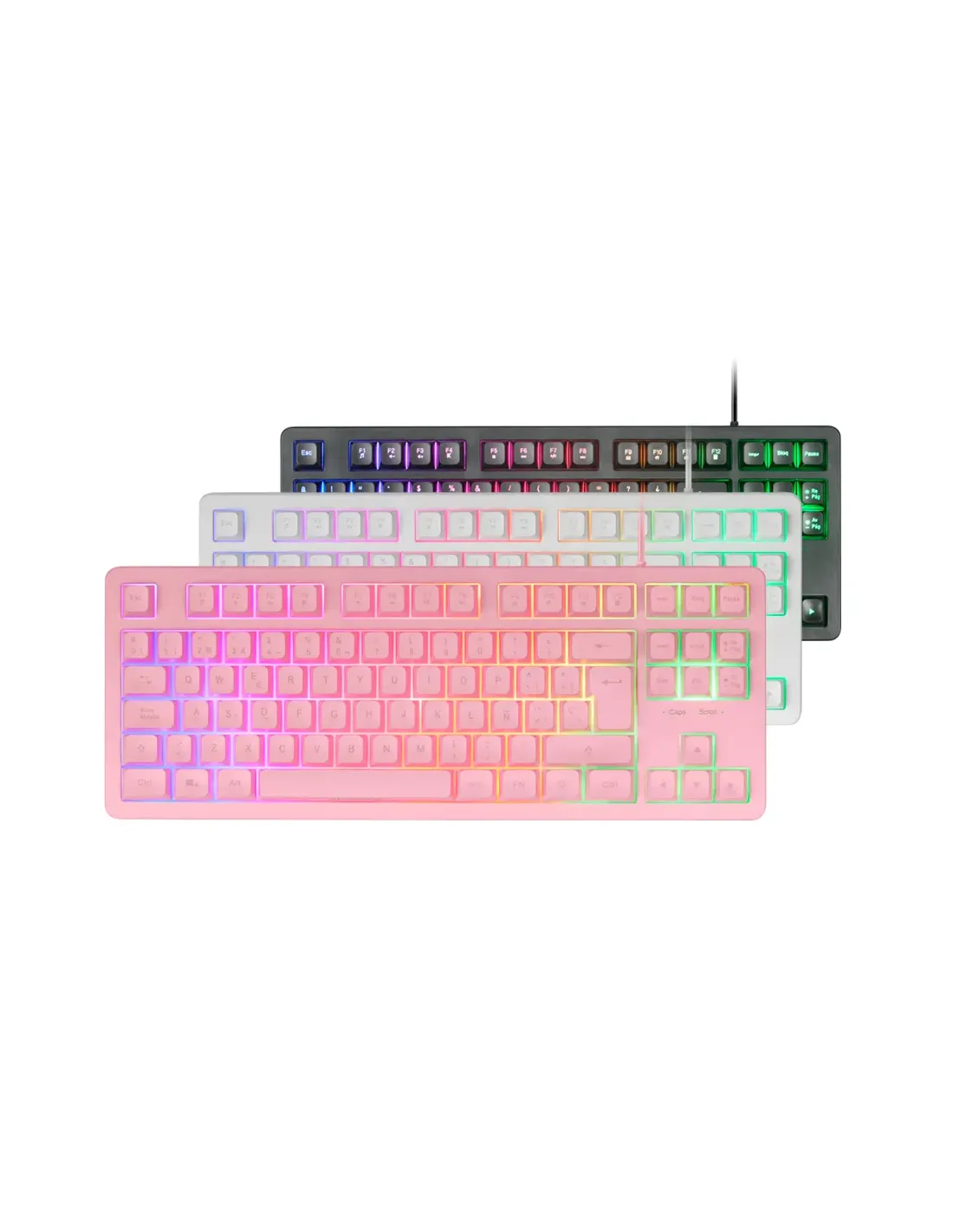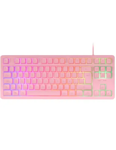 Mars Gaming MK023, Teclado Gaming TKL, Tecnología Híbrida H-Mech, Iluminación FRGB Rainbow, Anti-ghosting, Compatibilidad Universal, Rosa, Idioma Español. Estilo de teclado: Derecho. Tecnología de conectividad: Alámbrico, Interfaz del dispositivo: USB, Interruptor del teclado: Interruptor de membrana, Diseño de teclado: QWERTY. Tipo de retroiluminación: LED RGB. Longitud de cable: 1,45 m. Uso recomendado: Juego. Color del producto: Rosa