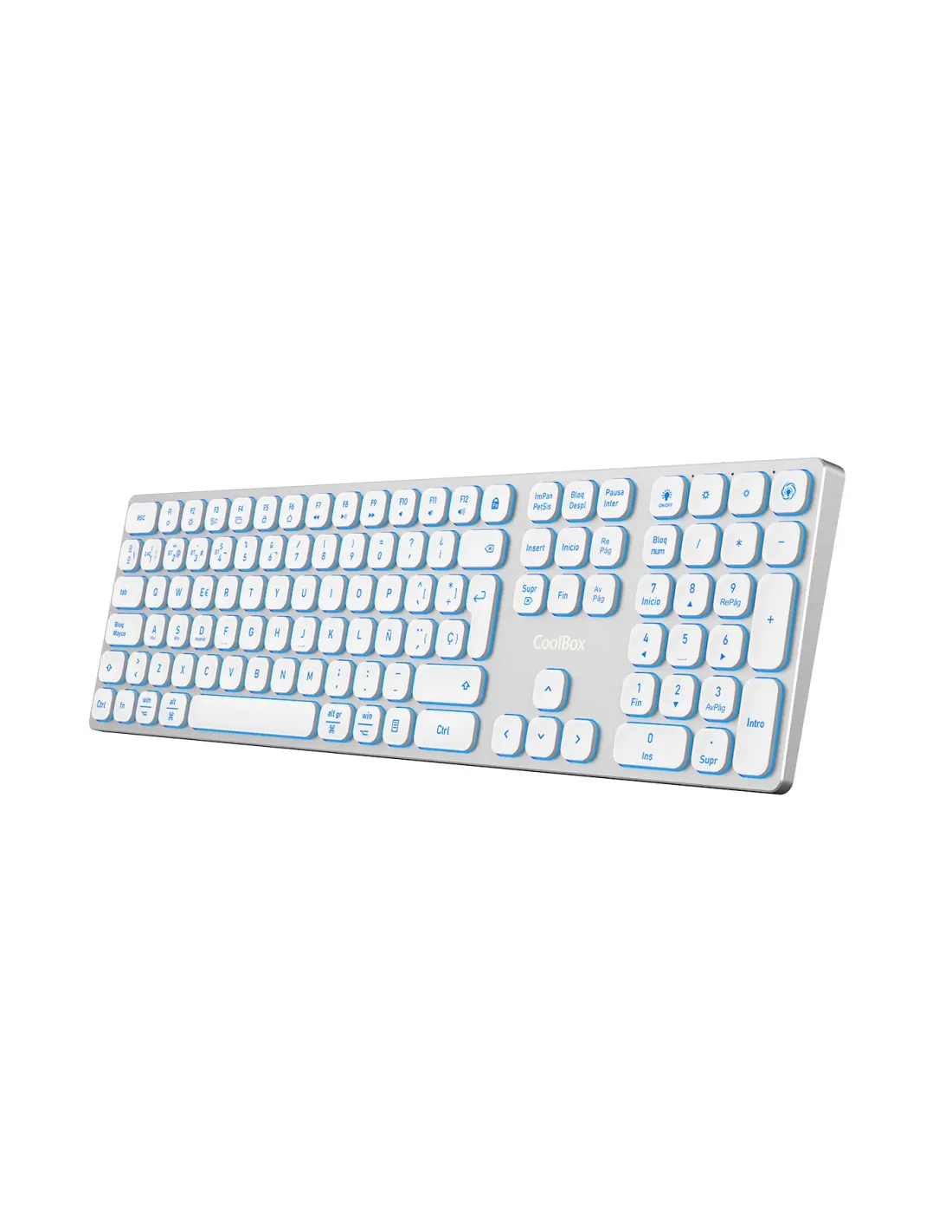 CoolBox TECLADO INALAMBRICO RETROILUMINADO MOONLIGHT KEY B431 USB-C+BT5.1+RF2.4G BLANCO DE ALUMINIO