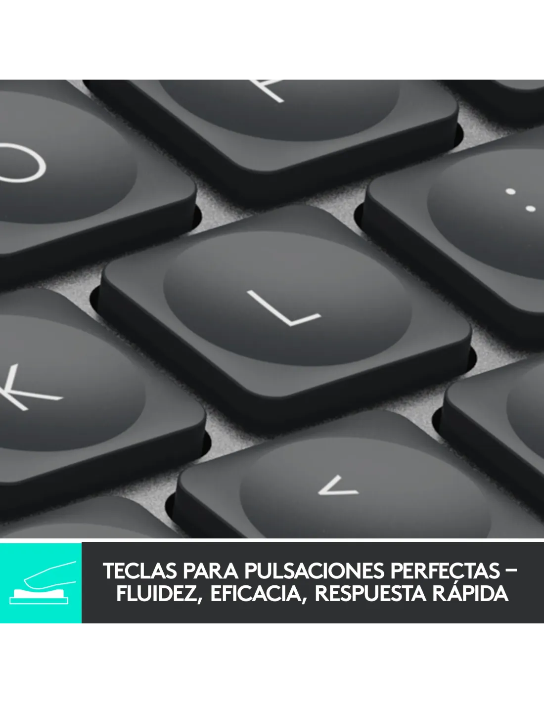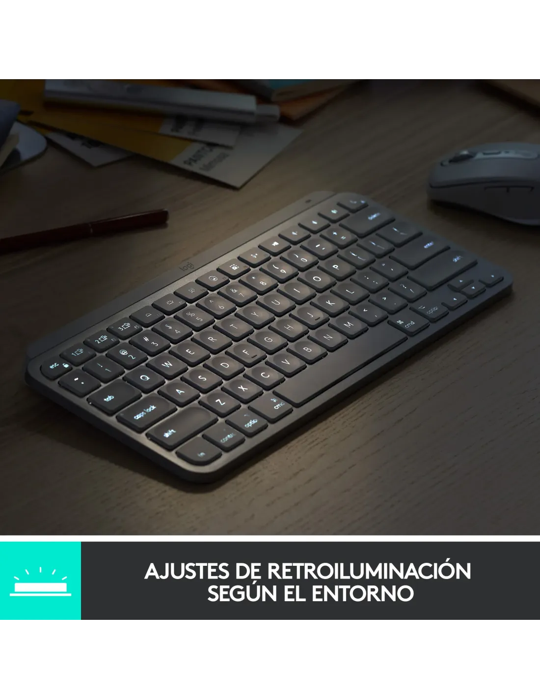Presentamos el Logitech MX Keys Mini Grafito, un teclado más pequeño, más inteligente y más poderoso, para creadores. Escribe con confianza en este teclado eficiente, estable y preciso. El diseño ergonómico alinea tus hombros. Coloca el ratón más cerca del teclado, sin estirar el brazo para mayor comodidad y posición del cuerpo mejorada. Completa tu MX Keys Mini con el MX Master 3 o el MX Anywhere 3 con tecnología Flow habilitada y teclea en varios dispositivos en un solo flujo de trabajo.CARACTERÍSTICASTamaño mini, muy poderoso: con una estructura diseñada para una precisión sin esfuerzo, con una forma minimalista para un teclado ergonómico portátil que te acompaña donde sea que trabajes.Multidispositivo, Multi OS: conecta el teclado compacto MX Keys Mini con hasta 3 dispositivos, con casi cualquier sistema operativo mediante Bluetooth Low Energy y cambia entre ellos fácilmente.Iluminación inteligente: este teclado inalámbrico retroiluminado tiene teclas que se iluminan cuando acercas tus manos. La luz se ajusta automáticamente conforme a las condiciones lumínicas.Recargable por USB-C: el teclado MX Keys Mini Bluetooth conserva la energía hasta 10 días con una carga completa, o hasta 5 meses con la retroiluminación desactivada.ESPECIFICACIONES Logitech MX Keys Mini GrafitoGeneralConexión mediante tecnología Bluetooth de bajo consumoTeclas con función Easy-Switch para conectar tres dispositivos y alternar fácilmente entre ellosRadio de acción inalámbrico de 10 metros. El radio de acción inalámbrico depende del entorno operativo y de la configuración de dispositivos.Sensores de proximidad de las manos que activan la retroiluminaciónSensores de luz ambiental que ajustan el brillo de la retroiluminaciónRecargable por USB-C. Una carga completa dura 10 días (o hasta 5 meses con la retroiluminación desactivada. La duración de las baterías depende del uso y de los dispositivos.Conmutador de encendido/apagadoIndicadores luminosos de bloqueo de mayúsculas y carga de bateríaCompatible con ratón preparado para Logitech FlowRequerimientosBluetooth Low EnergyWindows 10 o posterioresmacOS 10.15 o posterioresChrome OS: Las funciones básicas de los dispositivos se admitirán sin software para sistemas operativos distintos de Windows® y macOSLinux®: Las funciones básicas de los dispositivos se admitirán sin software para sistemas operativos distintos de Windows® y macOSiOS 13.4 o posteriores: Las funciones básicas de los dispositivos se admitirán sin software para sistemas operativos distintos de Windows® y macOSiPadOS 14 o posteriores: Las funciones básicas de los dispositivos se admitirán sin software para sistemas operativos distintos de Windows® y macOSAndroid 5.0 o posteriores: Las funciones básicas de los dispositivos se admitirán sin software para sistemas operativos distintos de Windows® y macOSDimensiones y pesoAltura: 131,95 mmAnchura: 295,99 mmProfundidad: 20,97 mmPeso: 506,4 gContenido de la cajaTeclado universalCable de carga USB-C (USB-A a USB-C)Documentación del usuarioInformación de garantíaDos años de garantía de hardware limitadaComprar Logitech MX Keys Mini Grafito