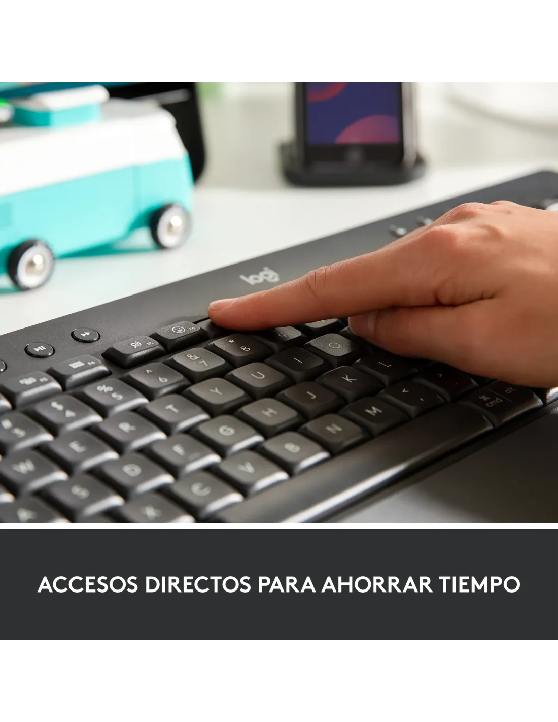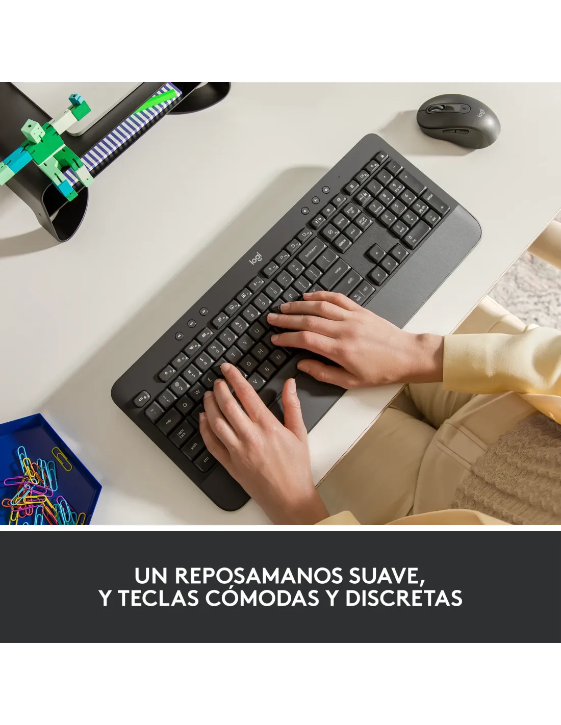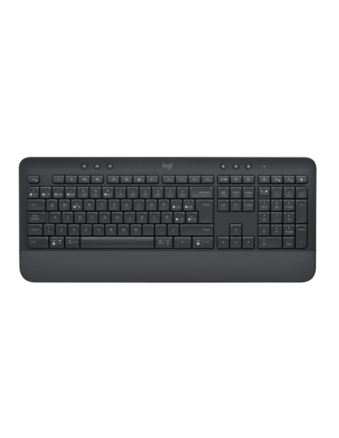 Ficha TécnicaGeneralTipo de dispositivo TecladoInterfaz Bluetooth 5.1Distancia operativa máxima Hasta 10 mReceptor inalámbrico Receptor de USB Logitech Logi BoltDispositivo de entradaTipo InalámbricoFunción de las teclas de acceso directo Multimedios,sin sonido,captura depantalla,webLocalización y diseño QWERTY españolAltura ajustable SíReposamuñecas SíProtección Resistente a salpicadurasCaracterísticas Teclado numéricoAnchura 45.731 cmProfundidad 19.35 cmAltura 2.43 cmPeso 707.5 gDiversoColor GrafitoFunciona con Chromebook SíSoftware &,Requisitos del sistemaSistema operativo requerido Linux,Google Chrome OS,Android 8.0 (Oreo) osuperior,Apple MacOS 10.15 o posterior,Apple iOS 14 o posterior,Apple iPadOS 14 osuperior,Windows 10/11 o superiorBateríaTipo Tipo AACantidad instalada 2Cantidad necesaria 2Tecnología AlcalinoTiempo de ejecución (máximo) 36 meses