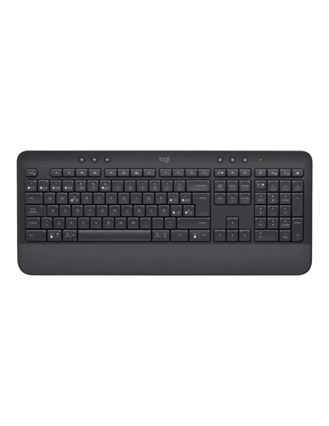 Ficha TécnicaGeneralTipo de dispositivo TecladoInterfaz Bluetooth 5.1Distancia operativa máxima Hasta 10 mReceptor inalámbrico Receptor de USB Logitech Logi BoltDispositivo de entradaTipo InalámbricoFunción de las teclas de acceso directo Multimedios,sin sonido,captura depantalla,webLocalización y diseño QWERTY españolAltura ajustable SíReposamuñecas SíProtección Resistente a salpicadurasCaracterísticas Teclado numéricoAnchura 45.731 cmProfundidad 19.35 cmAltura 2.43 cmPeso 707.5 gDiversoColor GrafitoFunciona con Chromebook SíSoftware &,Requisitos del sistemaSistema operativo requerido Linux,Google Chrome OS,Android 8.0 (Oreo) osuperior,Apple MacOS 10.15 o posterior,Apple iOS 14 o posterior,Apple iPadOS 14 osuperior,Windows 10/11 o superiorBateríaTipo Tipo AACantidad instalada 2Cantidad necesaria 2Tecnología AlcalinoTiempo de ejecución (máximo) 36 meses
