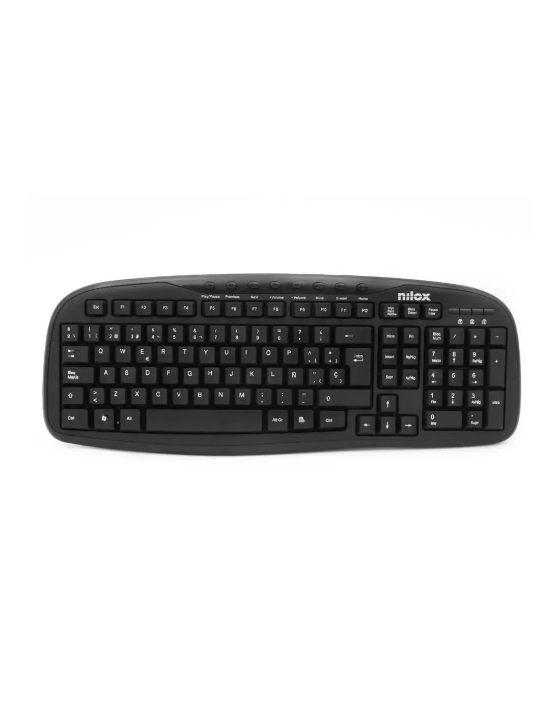 DESCRIPCIÓNTeclado Multimedia USB Negro Nilox trae una gran variedad de teclado USB ligeros yágiles, resistentes, que ofrecen una gran durabilidad, fáciles de usar y muymanejables. En un teclado USB la funcionalidad y la comodidad se unen paraconseguir un equilibrio perfecto. Un equilibrio dispuesto a sorprender al usuario yfacilitarle al máximo las conexiones USB. Aquí encontrarás lo último en diseño parateclados. Los nuevos teclado USB sorprenden por la gran funcionalidad de susteclas: un teclado numérico completo, teclas de función estándar, teclas multimedia,subir y bajar el volumen desde el teclado, accesos directos a Internet, al e-mail, ymuchas otras prestaciones más. Por ejemplo, el teclado USB permite apagar elordenador o ponerlo a reposar con una tecla del teclado. Todo, para que puedasdisfrutar de todas las opciones de tu ordenador de la manera más cómoda. Sin duda,con el teclado USB lo tendrás todo a una tecla de distancia. Todos nuestrosproductos son distribuidos por canal oficial español, por lo que todos los tecladosincluyen Ñ y disposición (layout) de teclas española, pudiendo diferir de ladistribución de teclas de las imágenes mostradas, a no ser que se indiqueclaramente lo contrario.ESPECIFICACIONES TÉCNICASRequisitos del sistemaSistema operativo Windows soportadoWindows 10,Windows 7,Windows 8,Windows XPPeso y dimensionesDimensiones de teclado (Ancho x Profundidad x Altura)442 x 24 x 168 mmPeso del teclado1,4 kgControl de energíaAlimentaciónUSBTecladoDiseño de tecladoQWERTYFormato del tecladoEstándarIdioma del tecladoEspañolInterfaz del dispositivoUSBTeclado numéricoSiUso recomendadoUniversalRatónRatón incluidoNoDiseñoColor del productoNegroDescansa muñecasNoEstilo de tecladoDerechoRetroiluminaciónNo
