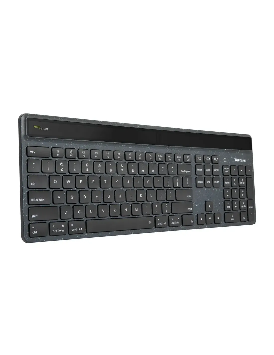 Targus EcoSmart. Formato del teclado: Completo (100%). Estilo de teclado: Derecho. Tecnología de conectividad: Inalámbrico, Interfaz del dispositivo: Bluetooth, Interruptor del teclado: Switch de tecla de tijera, Diseño de teclado: QWERTY. Tipo de retroiluminación: LED. Uso recomendado: Universal. Color del producto: Negro