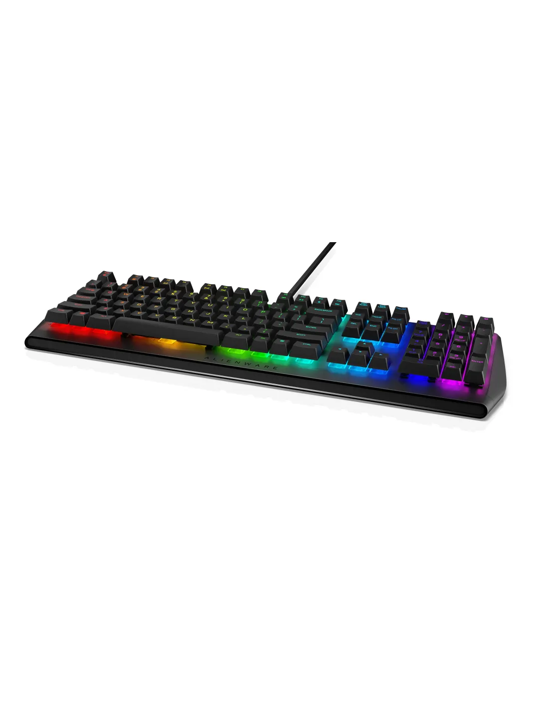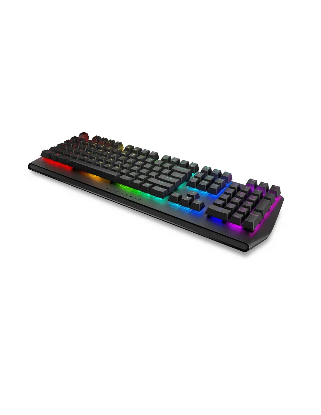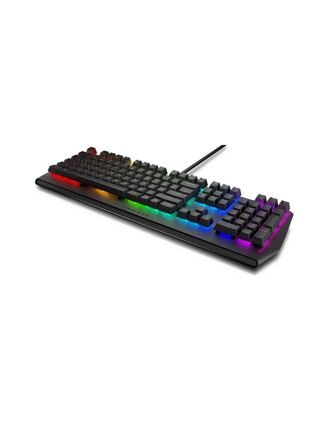 Alienware AW410K. Formato del teclado: Completo (100%). Estilo de teclado: Derecho. Interfaz del dispositivo: USB, Interruptor del teclado: Interruptor mecánico, Diseño de teclado: QZERTY. Tipo deretroiluminación: LED RGB. Uso recomendado: Juego. Color del producto: NegroTeclado para juegos mecánicos RGB Alienware | AW410KTeclado táctil Cherry MX diseñado para ofrecer una experiencia de juego envolvente e intuitiva. Ofrece iluminación RGB AlienFX por tecla personalizable con 16,8 millones de colores aproximadamente.ConectividadCableadoTeclas de acceso rápidoProgramablesin sonidoreproducir/pararparadaatrásvolumen -volumen +saltar hacia atrássaltar hacia adelanteTipo de conmutador de teclaCHERRY MX BrownInterfazUSBRetroiluminaciónAlienFX RGB / 16,8 millones de coloresFuncionesTeclado numéricoDISFRUTA DE UNA EXPERIENCIA TÁCTIL SUPERIOR EN TUS JUEGOSExperiencia mejorada: deshazte de los enemigos con precisión gracias a los conmutadores Cherry MX Brown líderes del sector. La combinación de respuesta táctil, teclas silenciosas, comodidad y ergonomía tepermite jugar más rápido y con más precisión para disfrutar de una increíble experiencia de juego en todo momento.Diseño resistente: un dispositivo que garantiza su durabilidad con más de 100 millones de pulsaciones.Prácticas opciones de conectividad: el passthrough USB integrado te permite conectar accesorios, como el ratón o unos auriculares, fácilmente sin tener que recurrir al PC.Fiable y preparado para la batalla: la tecnología anti-ghosting con N-key rollover garantiza que se detecte cada pulsación y evita que el teclado se quede colgado durante las partidas más intensas.La forma sigue a la función: las teclas flotantes compactas con conmutadores montados directamente en la placa superior de metal permite limpiarlas fácilmente y aporta al teclado un diseño elegante listo paralas partidas más intensas.PERSONALIZA TU DISPOSITIVOIluminación adecuada en cualquier situación: la retroiluminación RGB AlienFX por tecla totalmente personalizable ofrece unos 16,8 millones de colores para que disfrutes de una experiencia de juego envolvente.Un equipo a tu gusto: las teclas totalmente programables con memoria integrada te permiten personalizar tus macros y asignaciones de teclas para que juegues a tu manera.Comodidad y sencillez: ajusta la altura con 3 ángulos ergonómicos diferentes para jugar cómodamente.Audio óptimo: accede fácilmente a tu configuración de audio con controles multimedia dedicados que te permiten hacer tus propios ajustes.Dimensiones y peso1. Altura: 35,81 mm (1,41") | 2. Anchura: 464,82 mm (18,3") | 3. Profundidad: 155,95 mm (6,14") | Peso mínimo: 1,01 kg (2,23 lb)CaracterísticasTeclas Cherry MX Brown de última generaciónRetroiluminación RGB AlienFX por tecla personalizable con 16,8 millones de colores aproximadamente100 millones de pulsaciones de teclas sin pérdida de calidadTeclas totalmente programables para macros y asignaciones de teclasControles de audio dedicados para hacer ajustes de forma más rápida y precisaPassthrough USB y teclas multimedia dedicadasAnti-ghosting/N-Key rolloverArquitectura de tecla flotante compactaPlaca superior de metal sólida