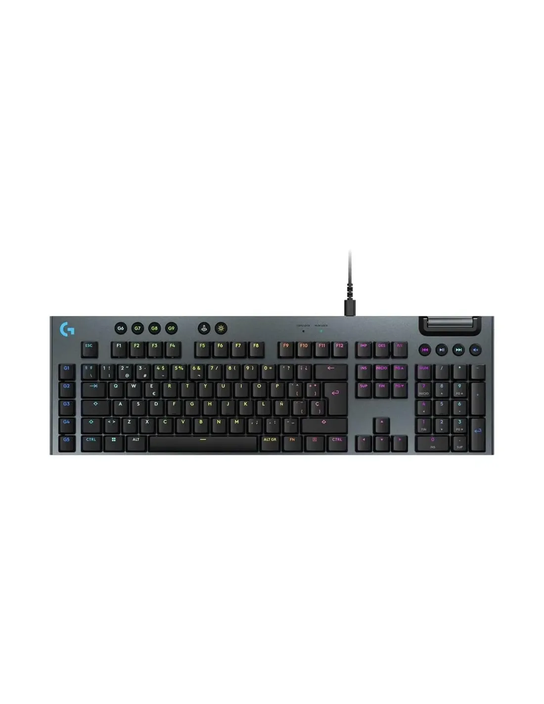 Características del Logitech G G915 XEl Logitech G G915 X es un teclado mecánico gaming premium que combina diseño ultradelgado, interruptores GL Tactile de alto rendimiento y retroiluminación LIGHTSYNC RGB. Diseñado para jugadores exigentes y profesionales, ofrece una experiencia de escritura rápida y precisa, además de una construcción sólida y elegante en acabado negro. Su diseño QWERTY en español y la posibilidad de programar teclas lo convierten en una herramienta versátil tanto para gaming como para productividad avanzada.Diseño premium y comodidad de usoCon un grosor de tan solo 2,26 cm y un peso de 1,04 kg, este teclado combina ligereza y robustez. Su estructura ultrafina mejora la ergonomía y, gracias a su altura ajustable, se adapta a diferentes estilos de uso para largas sesiones de juego o trabajo.Dimensiones: 47,5 cm (ancho) x 15 cm (profundidad) x 2,26 cm (alto)Peso: 1,04 kgAltura ajustable para mayor comodidadCable USB-C extraíble (1,8 m incluido)Interruptores mecánicos GL TactileLos interruptores GL Tactile ofrecen una sensación precisa con respuesta rápida y silenciosa, ideales para jugadores que buscan equilibrio entre velocidad y control. Además, la tecnología mecánica de Logitech garantiza durabilidad y fiabilidad a largo plazo.Interruptores GL Tactile de perfil bajoDiseño QWERTY español con teclado numéricoConstrucción resistente para uso intensivoRetroiluminación LIGHTSYNC RGBEl teclado incorpora retroiluminación RGB LIGHTSYNC, que permite personalizar la iluminación de cada tecla y sincronizar efectos con juegos, música y aplicaciones. Una experiencia inmersiva y personalizable para cada usuario.Iluminación individual por tecla RGBSincronización con juegos y multimediaControl total mediante software Logitech G HUBFunciones programables y controles multimediaEl Logitech G G915 X está diseñado para maximizar el control en tus partidas. Dispone de 9 teclas G dedicadas y programables, accesos directos configurables y controles multimedia integrados con botón de rueda para volumen, lo que permite un control inmediato y práctico.9 teclas G programablesTeclas de acceso directo multimediaRueda dedicada para volumenCompatibilidad y requisitosEste teclado funciona de forma nativa en Windows 10 o posterior y MacOS 12.0 o posterior. Se conecta vía USB y gracias a su cable extraíble USB-C es fácil de instalar y transportar.Compatible con Microsoft Windows 10 o posteriorCompatible con Apple MacOS 12.0 o posteriorIncluye cable USB-A a USB-COtras especificacionesCumple con normas FSCTemperatura de funcionamiento: 0 °C a 40 °CHumedad de funcionamiento: hasta 95%Color: Negro